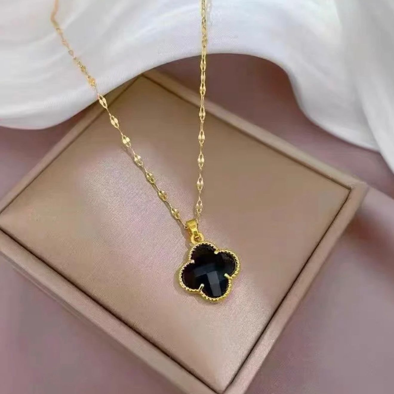 New Four-leaf Flower Titanium Steel Necklace Women's Temperament Sexy Necklace Internet Celebrity Lucky Grass Explosions Clavicle Chain Not Falling