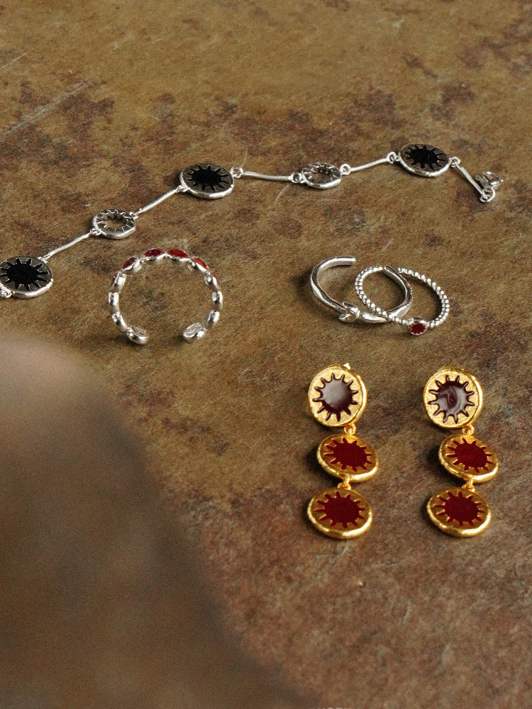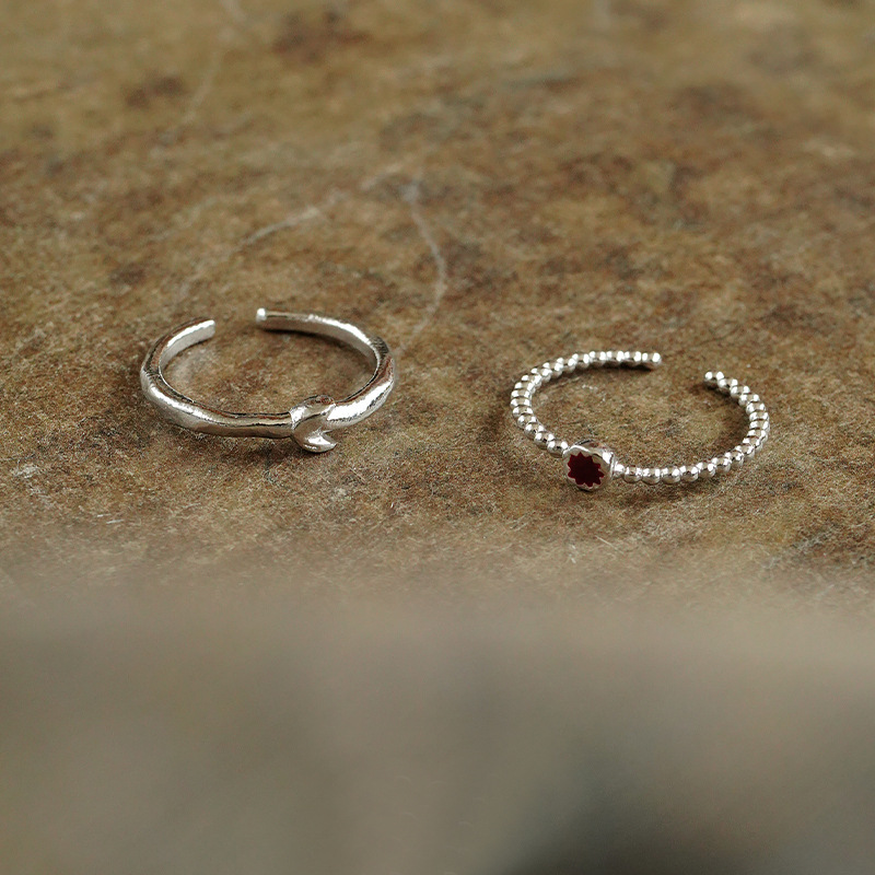 Dong Jie with S925 Sterling Silver Sun Moon Set Ring Niche Designer Classic Texture Simple High-end Ring