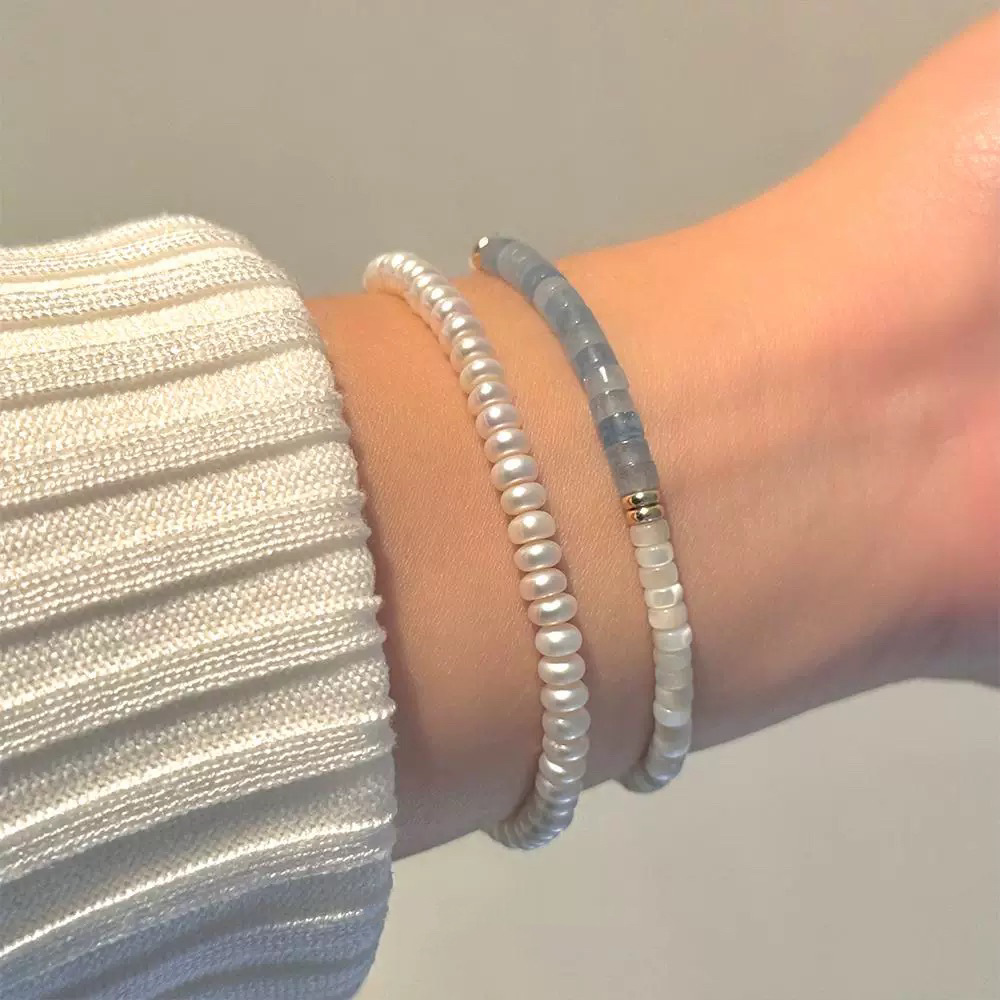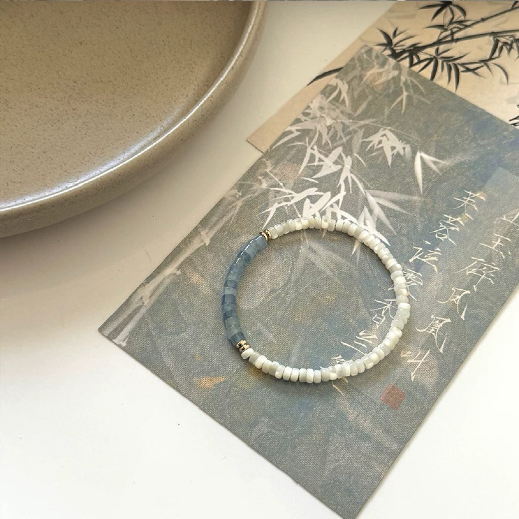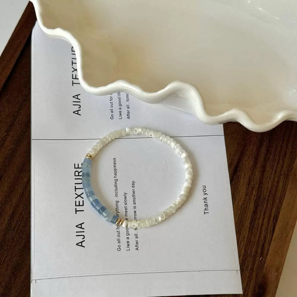 Aquamarum Bracelet White Butterfly Shells Stretch Bracelet Gifts Best Friend Show White Guofeng High-end Stacked Wear Light Luxury All-match Beads