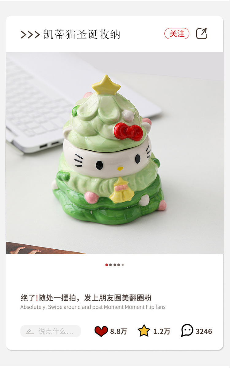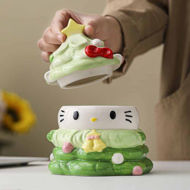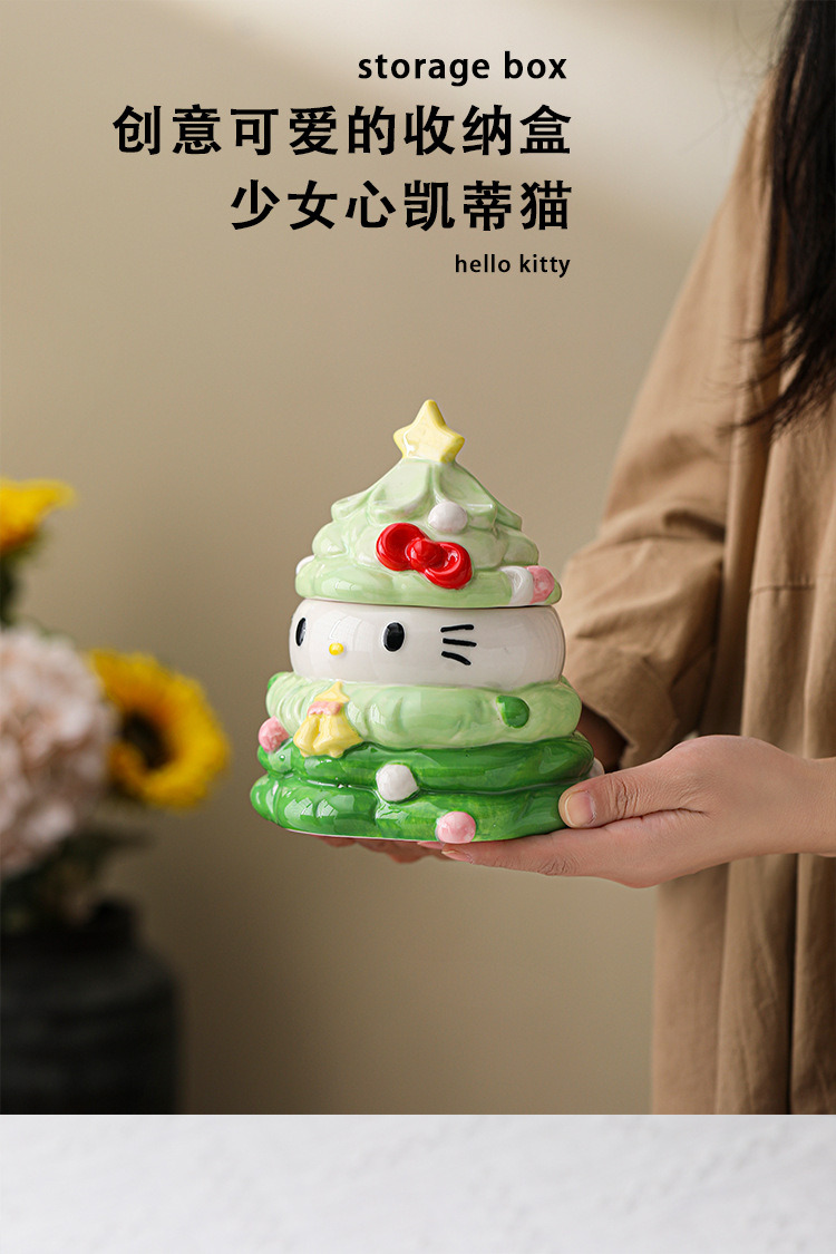Creative Christmas HelloKitty Storage Jar Ceramic Cute Storage Box Desktop Ornaments Girl Heart Candy Jar