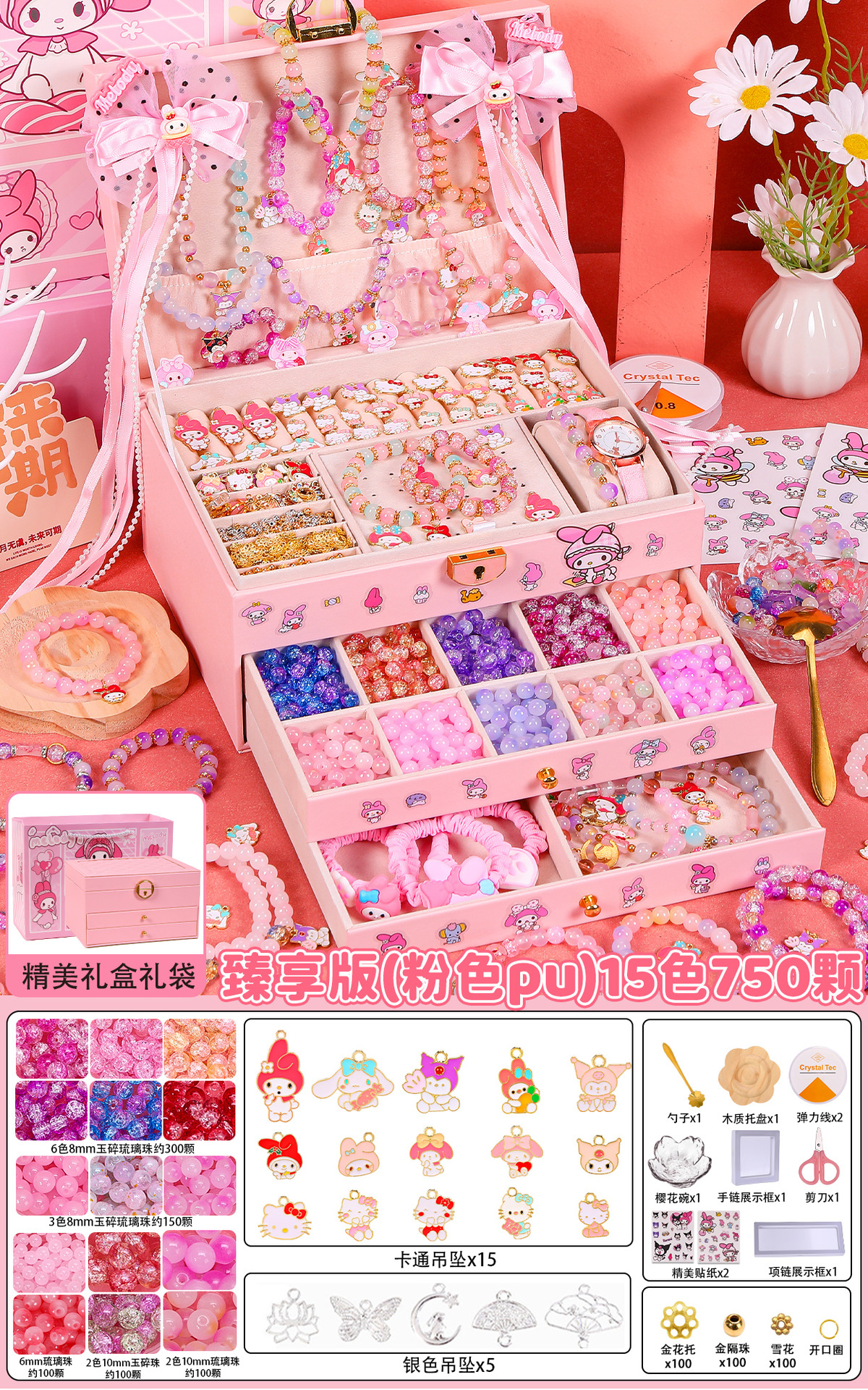 Colour: Melody bead set - flagship edition 15 colors 750 beads + pink three-layer box + gift bag