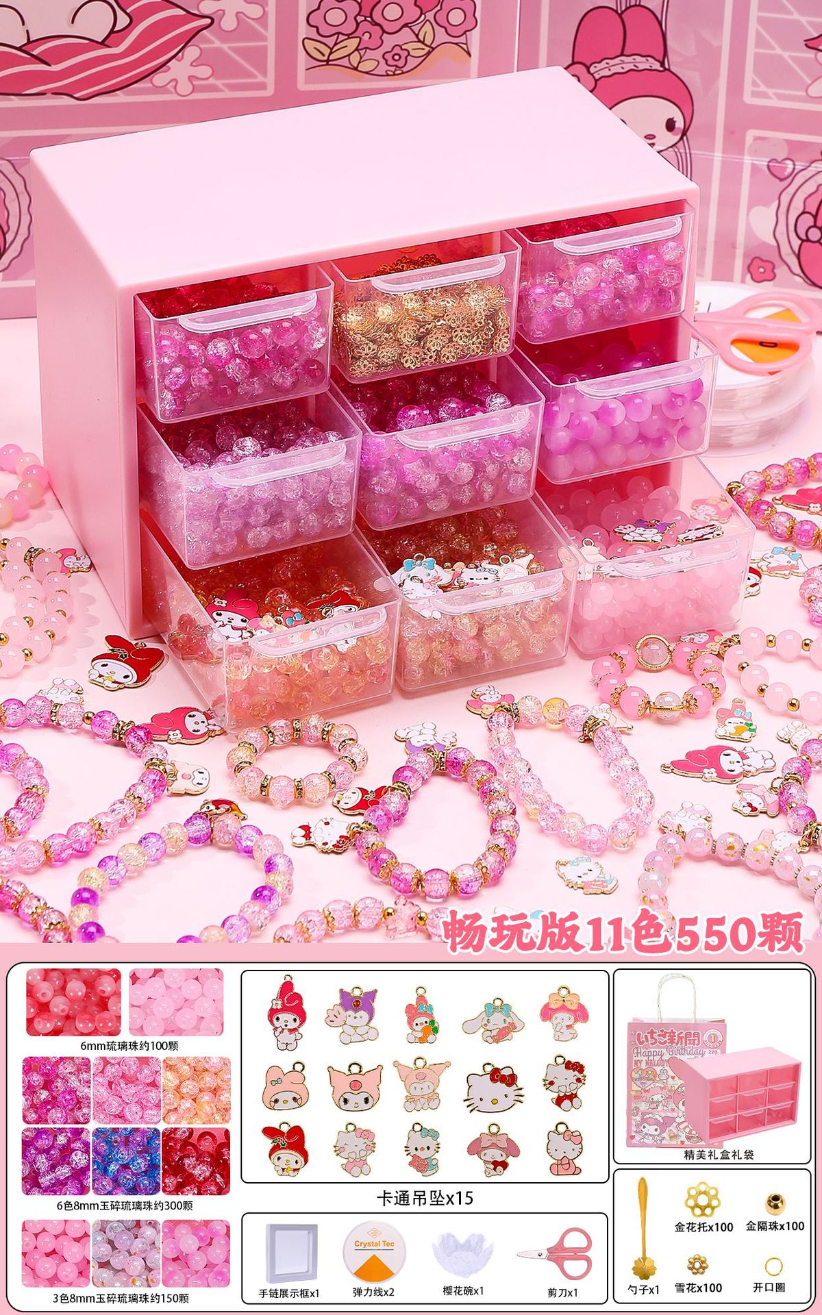 Colour: Melody bead set-high-end version 11 colors 550 pieces + pink three-layer box + gift bag