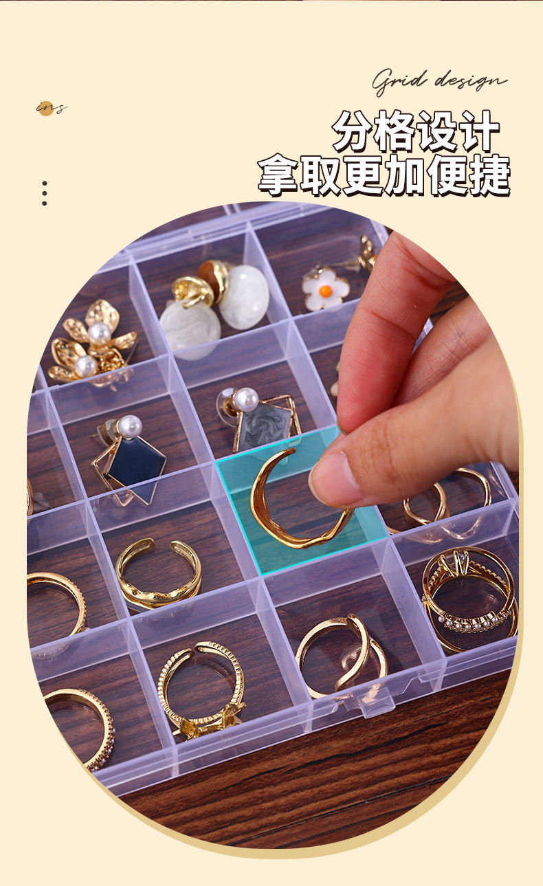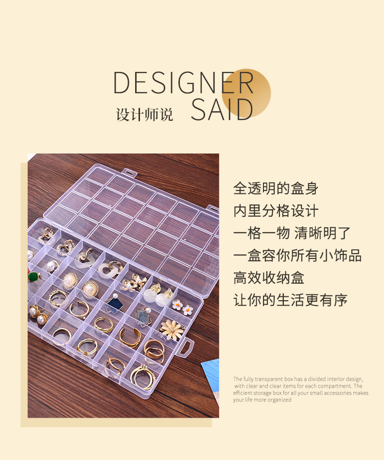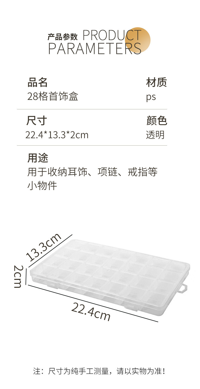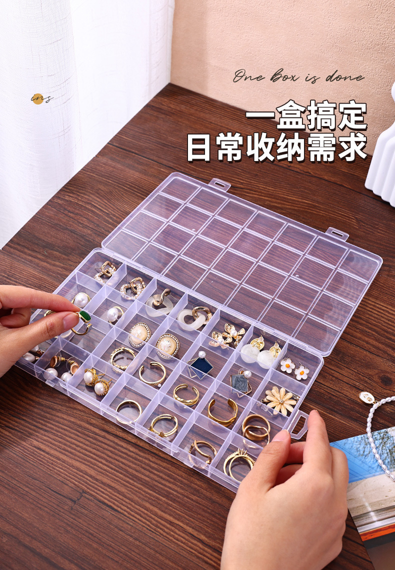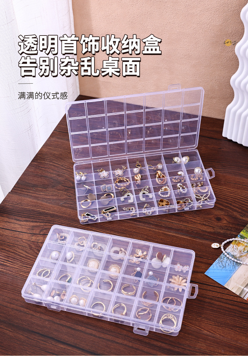 Jewelry storage display box 28 fixed anti-string jewelry box transparent plastic earrings earrings ring storage