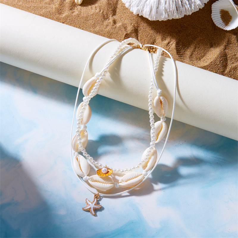 European and American Fashion Cross-border Jewelry Hawaiian Style Personality Casual Necklace Woven Shell Short Collarbone Necklace