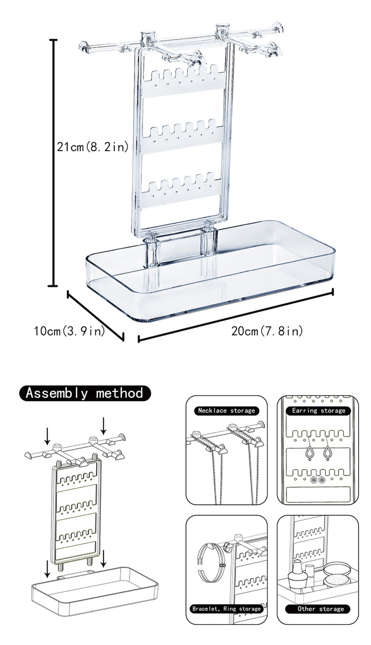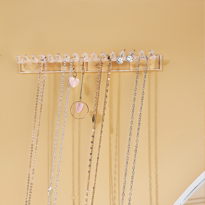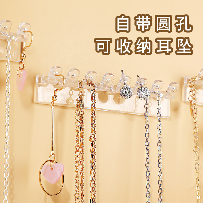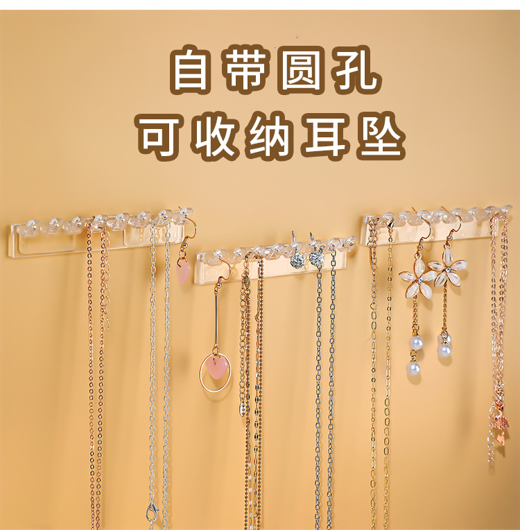 • 商品名称:日式迷你8孔钩壁挂首饰架 自带圆孔耳坠耳钉项链收纳架--透明 3个装/带首饰盘整理盒--透明