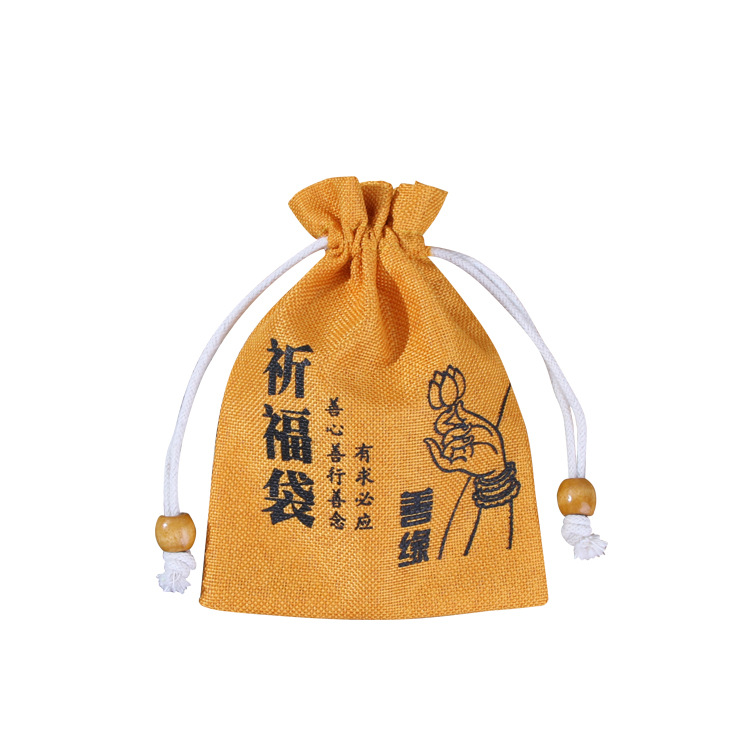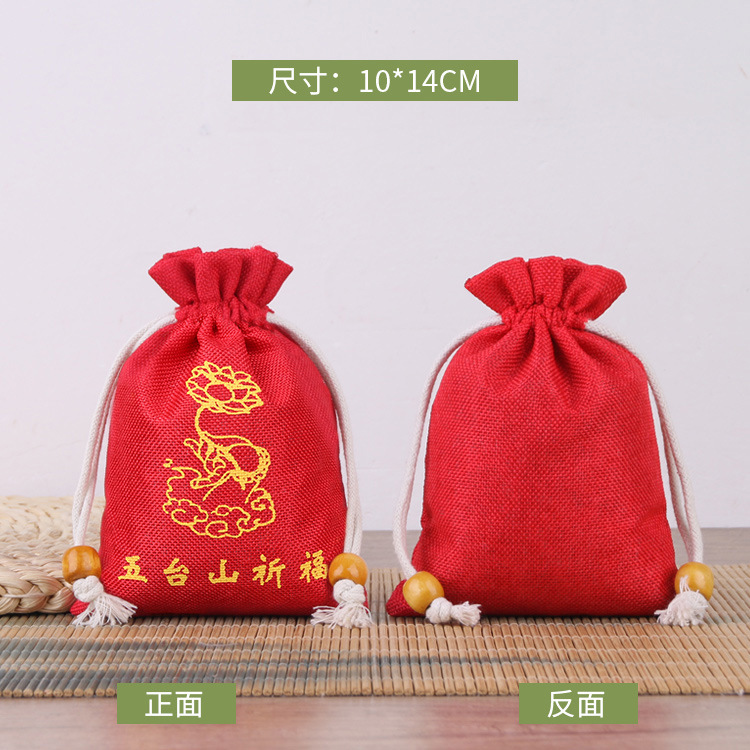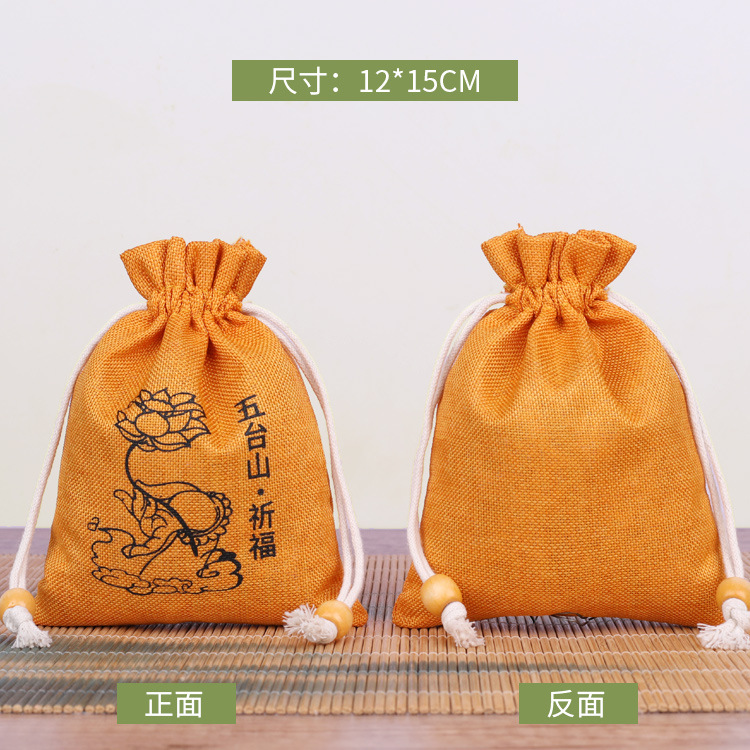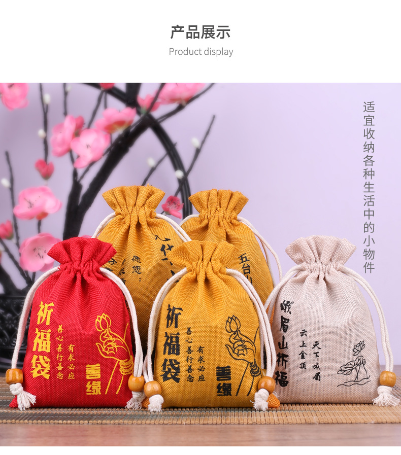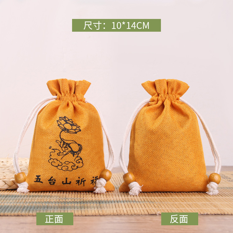 Cotton and linen cloth bag bundle mouth brocade bag Buddha beads lucky bag hand string storage bag text play jewelry bundle mouth 10*14