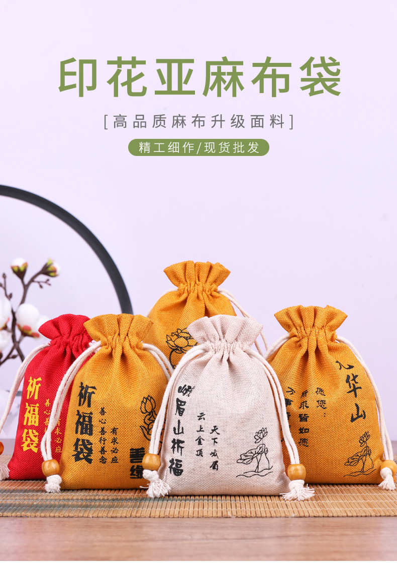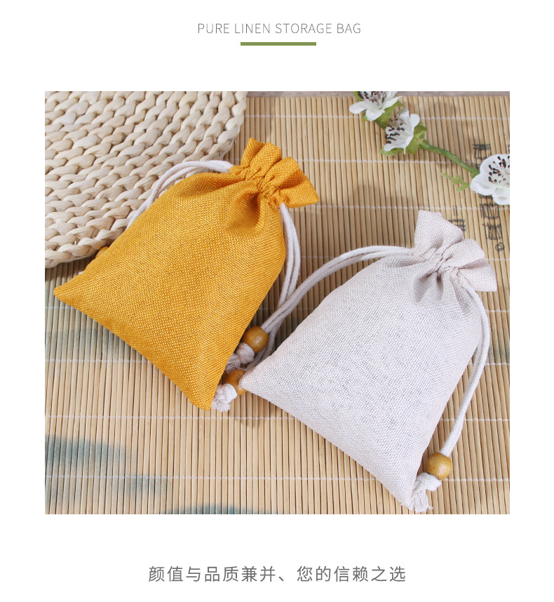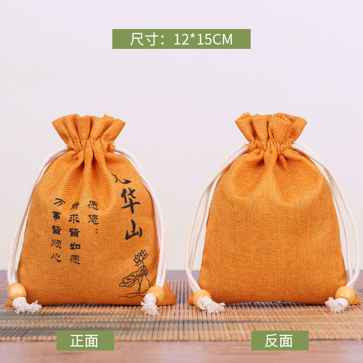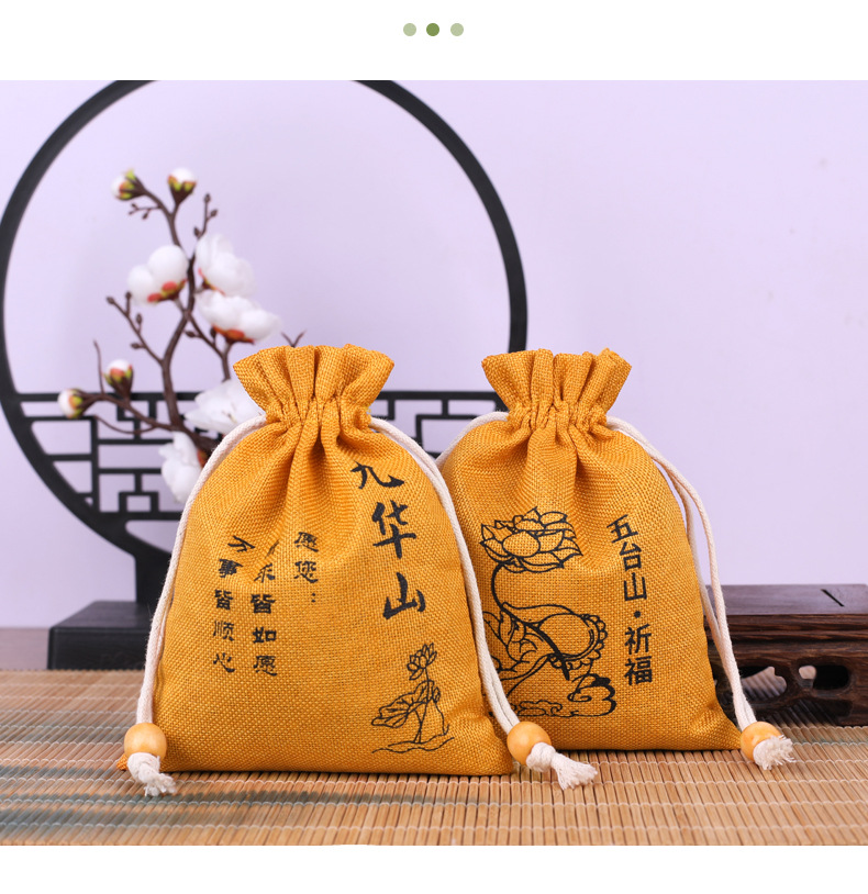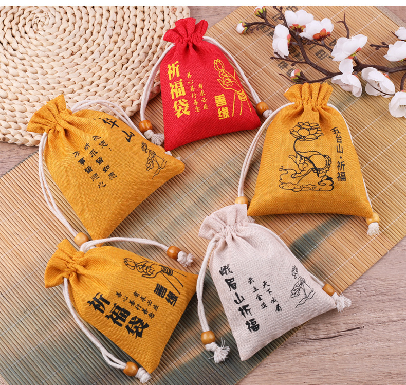 Cotton and linen cloth bag bundle mouth brocade bag Buddha beads lucky bag hand string storage bag text play jewelry bundle mouth 10*14