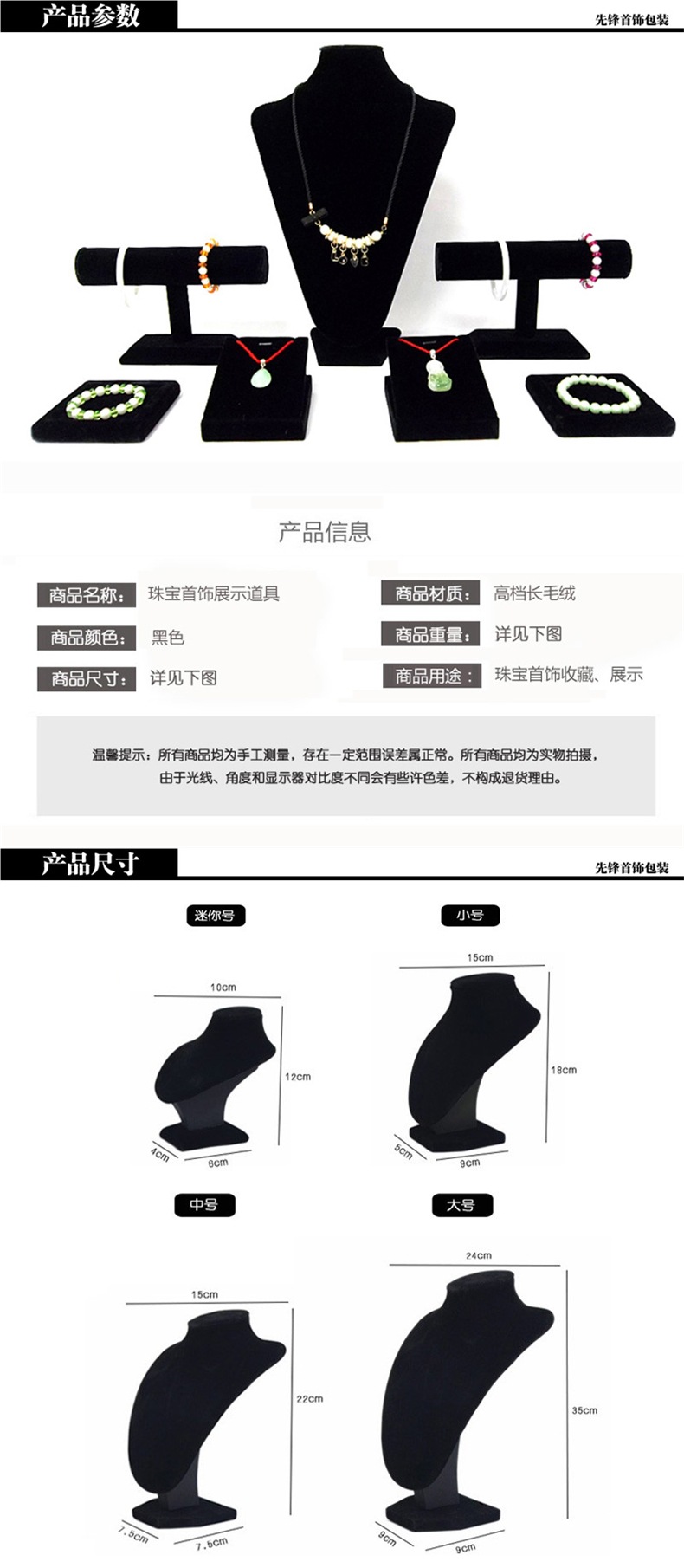 Jewelry Display Stand Black Velvet Set Diamond Jade Jewelry Props Ring Earrings Necklace Jewelry Counter Display Holder
