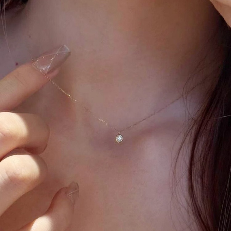 French Style Light Luxury Small Round Diamond Extremely Fine Necklace Women's Fresh Style Instagram Style Korean Style Simple Clavicle Chain