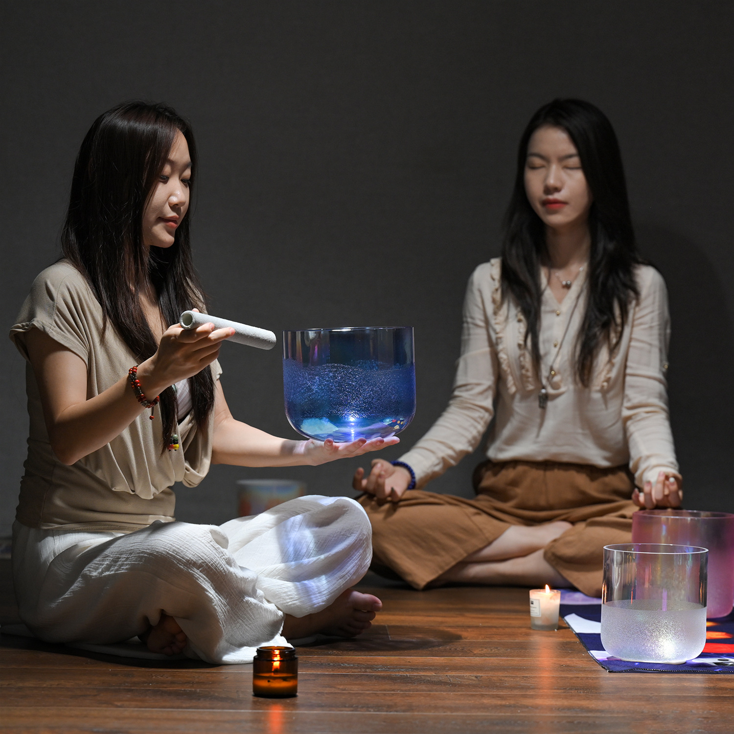 Glacier Blue Tone Therapy Decompression Yoga Crystal Mantle Gold Mantle Color Music Meditation Transparent Tone Mantle Mantle