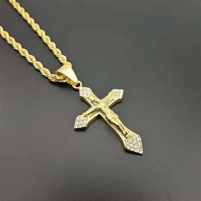 Niche design simple and exquisite micro-inlaid zircon cross necklace pendant European and American cross-border personalized clavicle chain for women