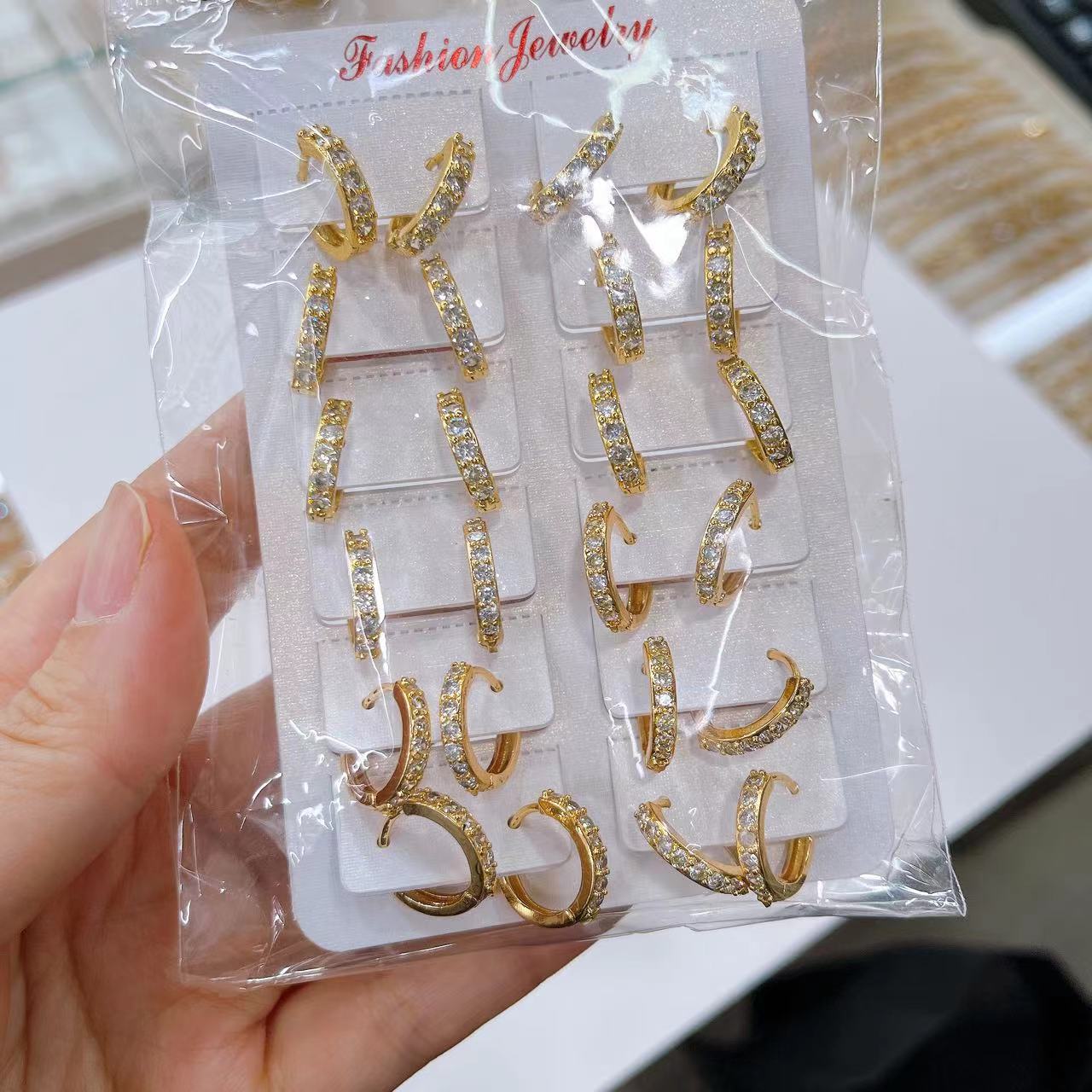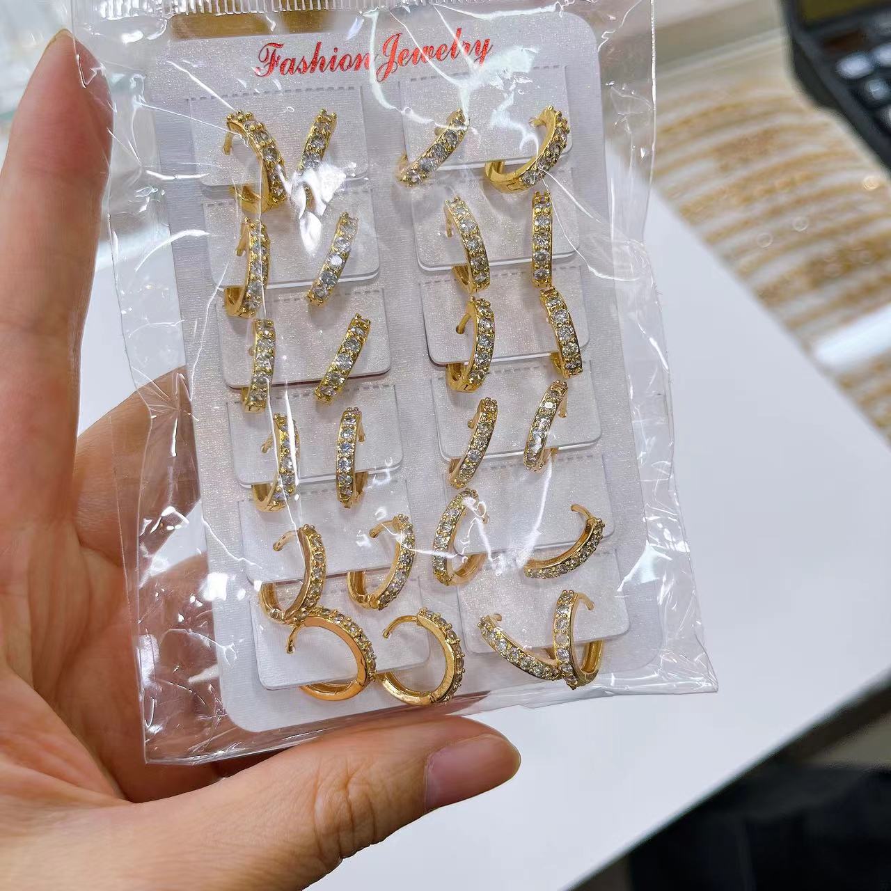 合金镶钻耳环,12对起批。