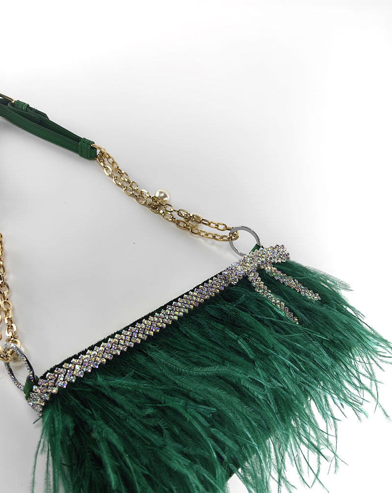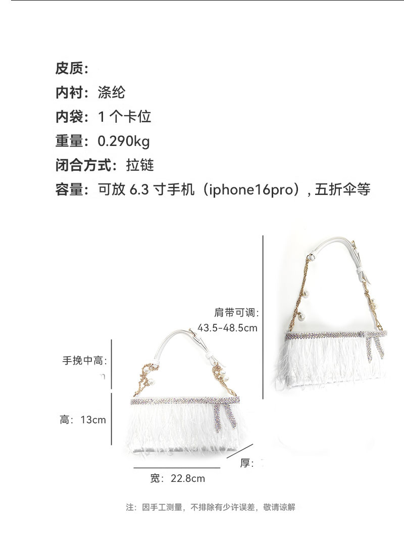 Cross-border INS Retro Plush Women's Bag Tassel Pearl Chain Mao Mao Bag European and American Fairy Style Crossbody Hand Bag