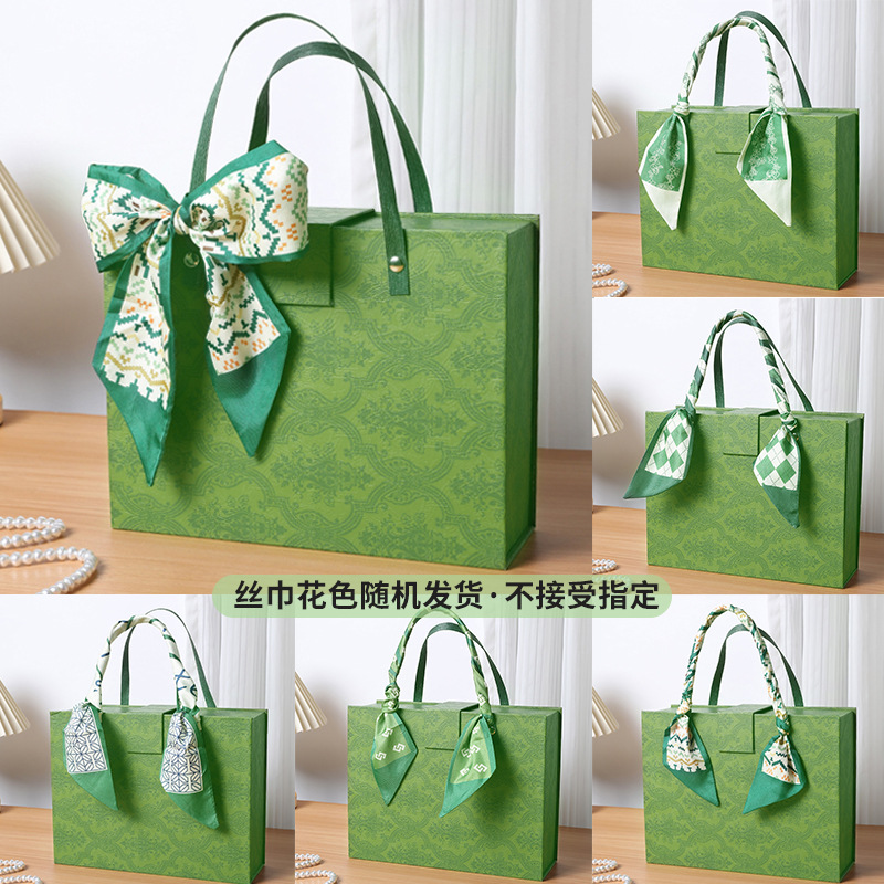 Specifications and models: Gucci green suitcase + silk scarf; 27x21x10cm