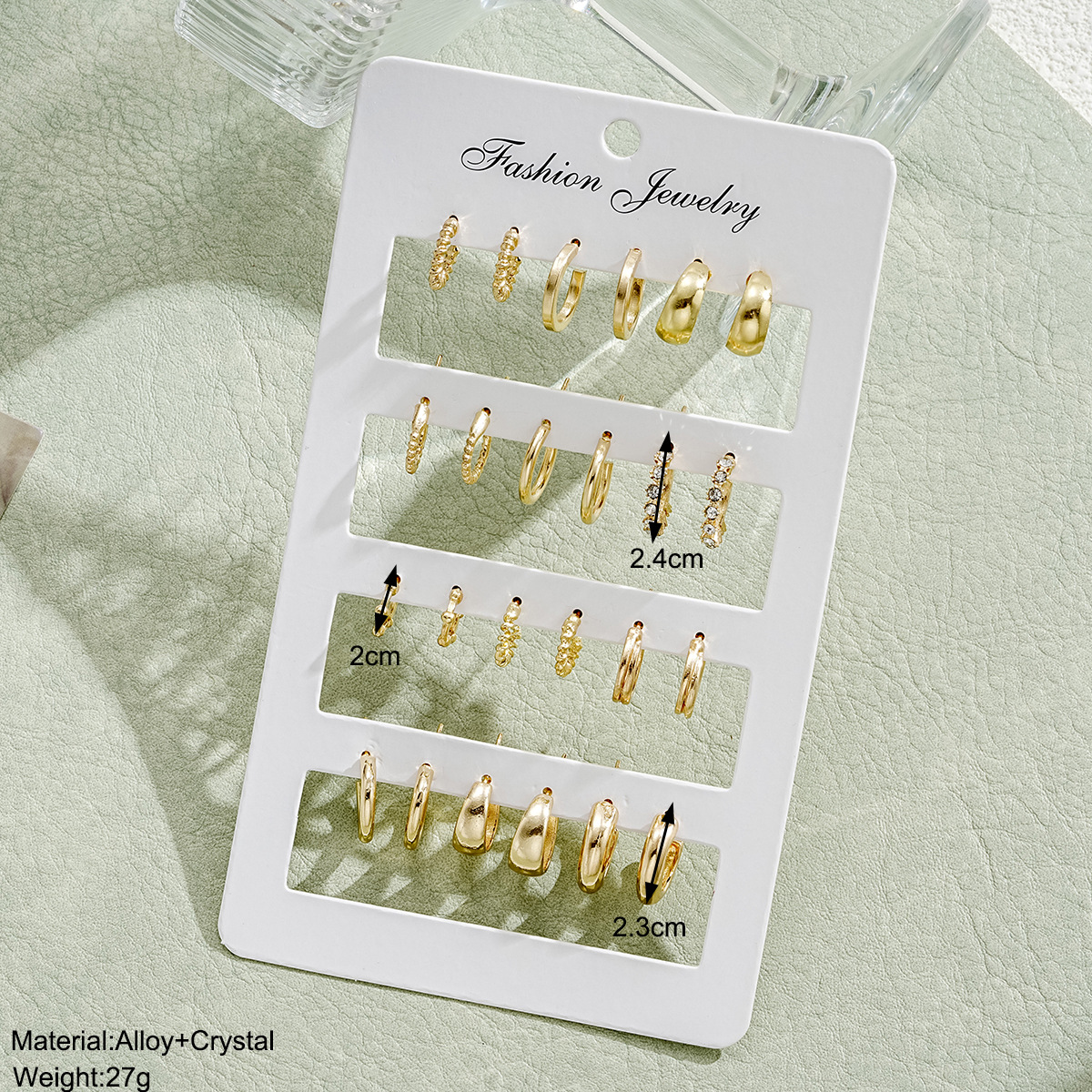 Cross-border New European and American Personality Temperament Creative C- type Drill Earrings 12 Piece Set Fashion Jewelry Advanced Sense Earrings