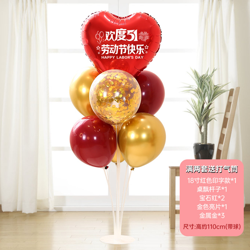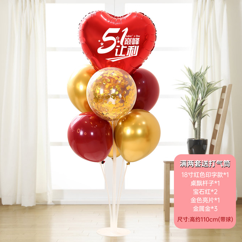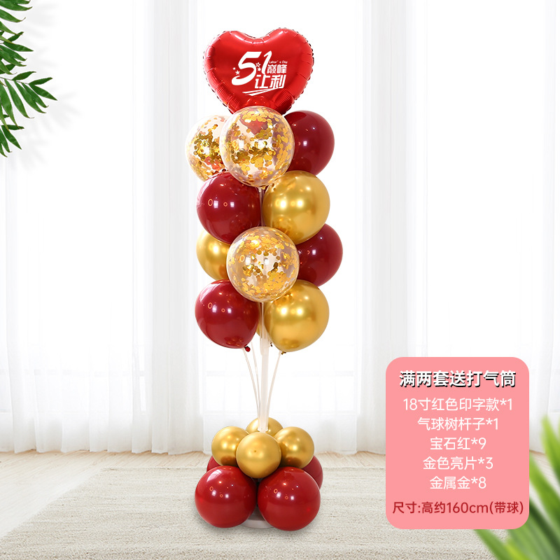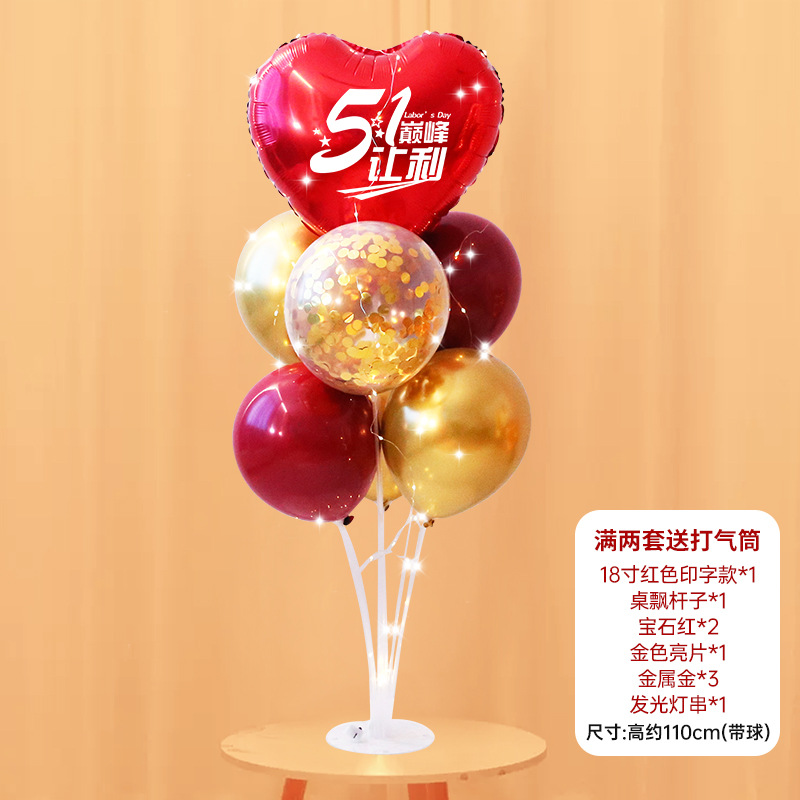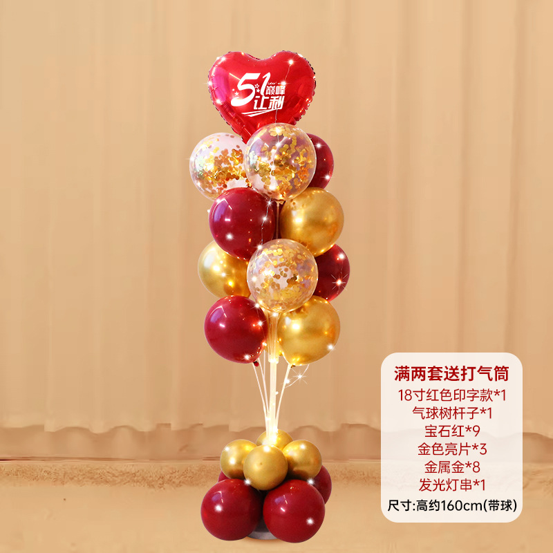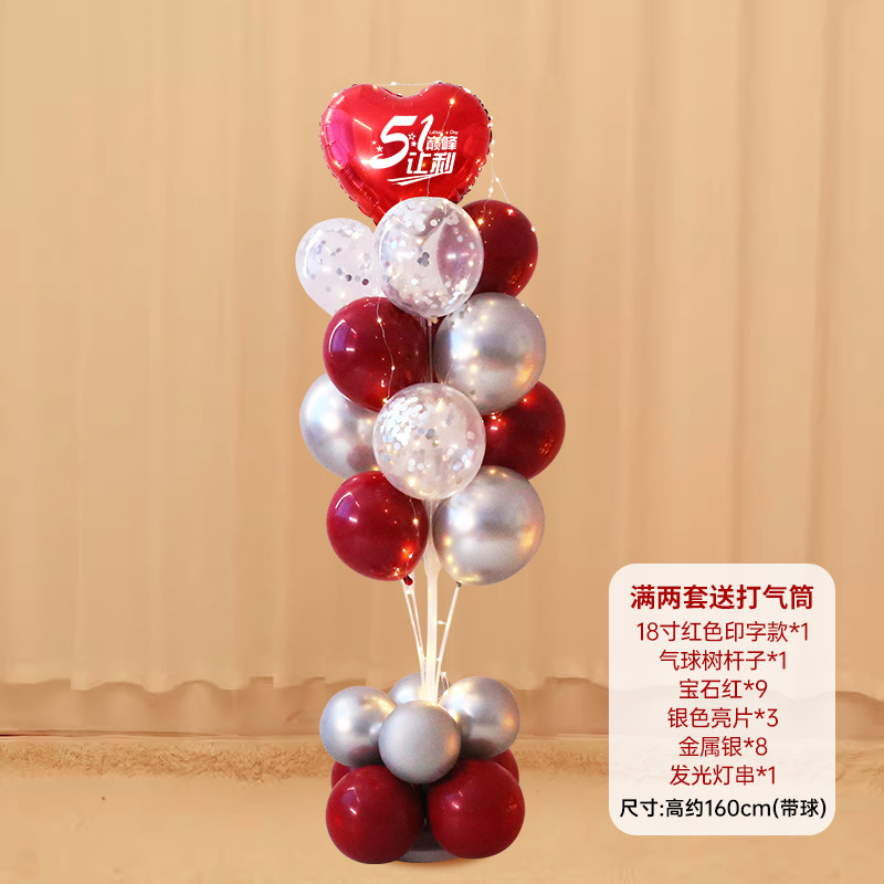 Size: Ruby red silver luminous balloon tree-[happy 51 labor day] + lights
