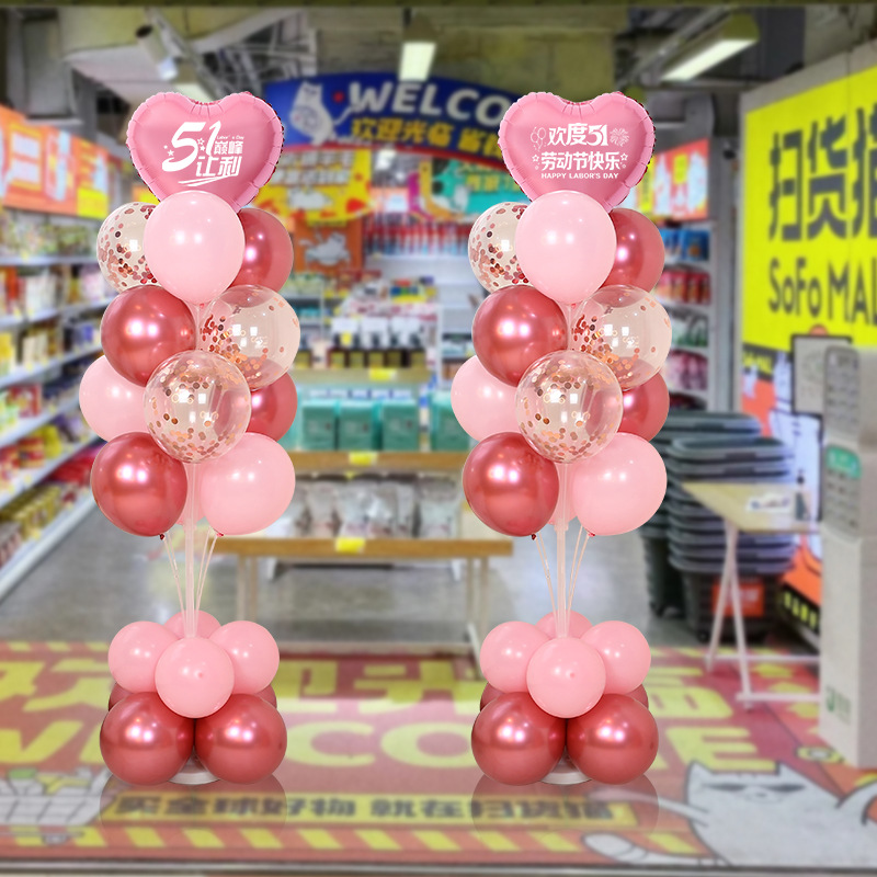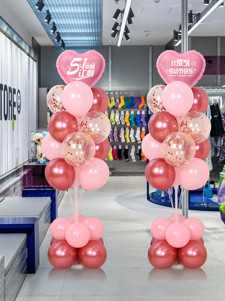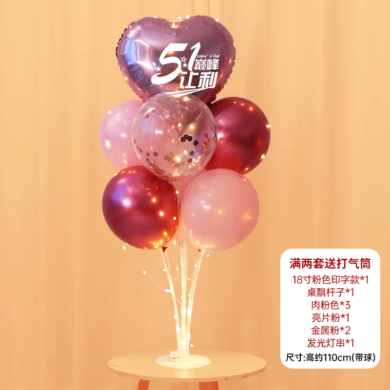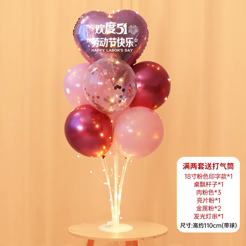 Size: Pink glowing balloon tree-[happy 51st labor day] + lights