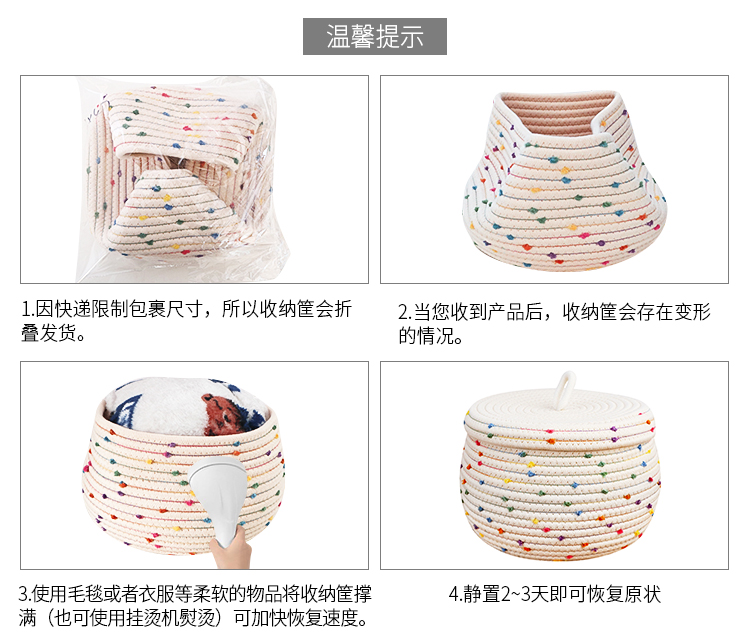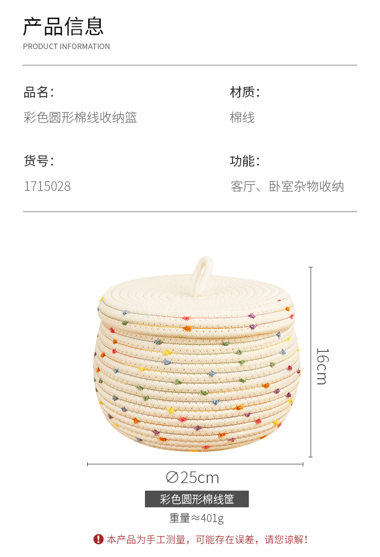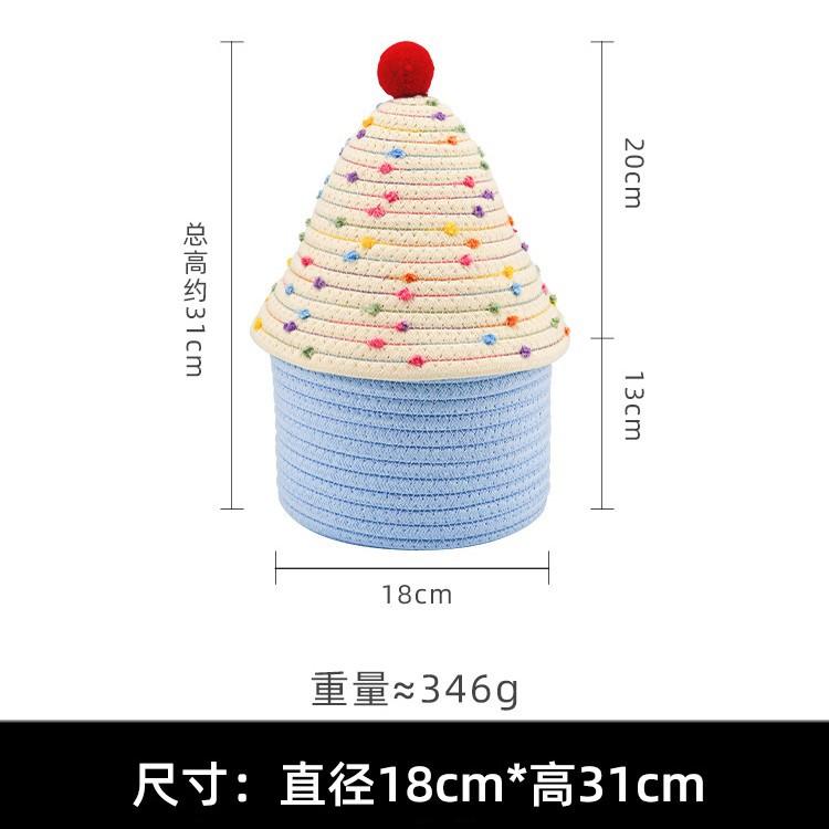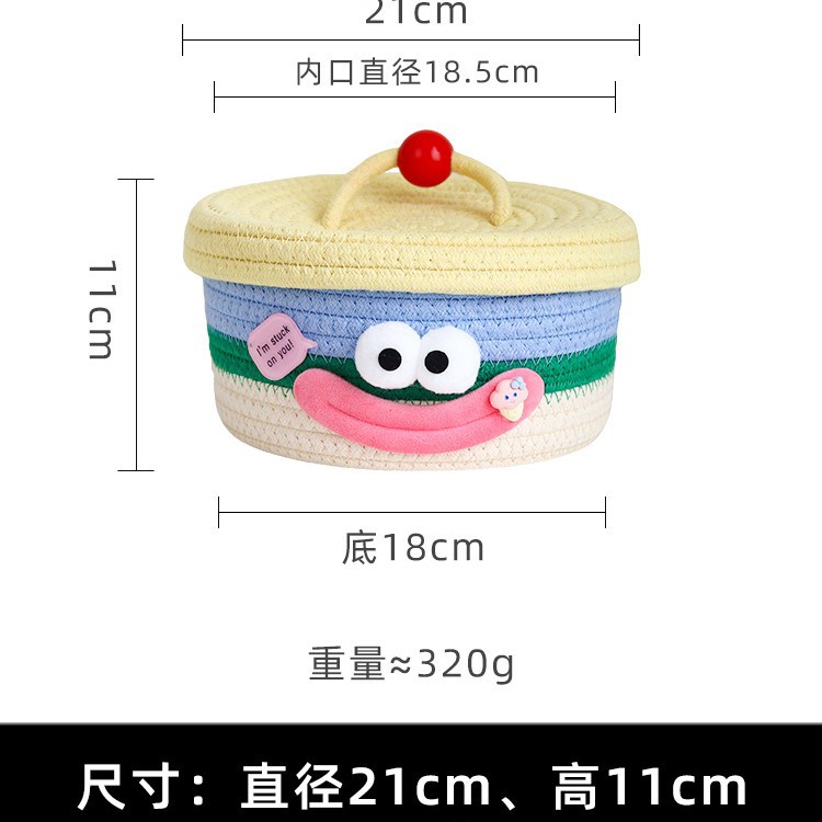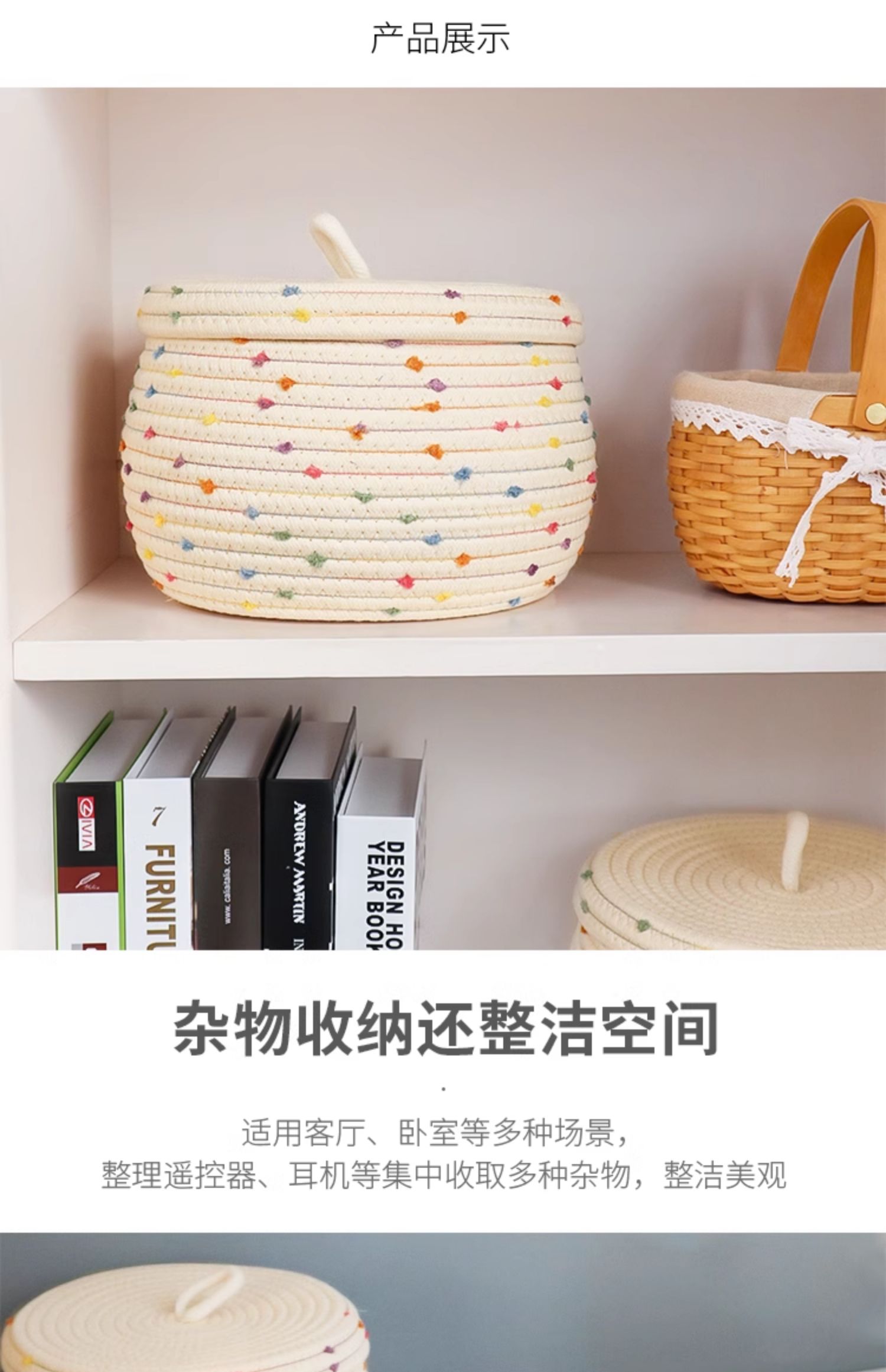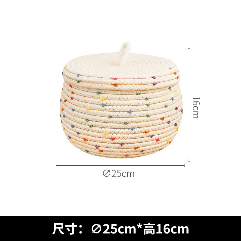 Desktop Storage Basket Woven Storage Box with Lid Cotton Snacks Living Room Coffee Table Wool Toy TV Cabinet Storage Basket