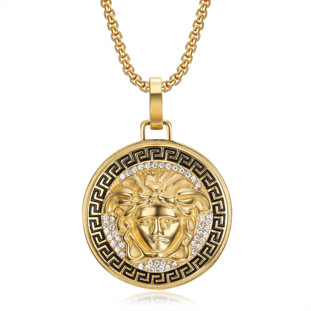 European and American Accessories Diamond-encrusted Fan HIPHOP Hip Hop Rap Jewelry Lion Head Necklace 18K Gold Fashion Brand Pendant