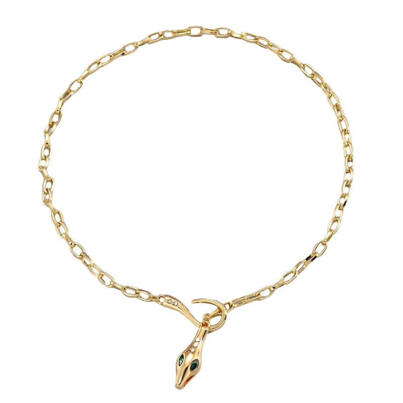 New Cross-border Elegant Snake Head Necklace Metal Snake Diamond Adjustable Clavicle Chain Women's Trendy Light Luxury Neck Chain