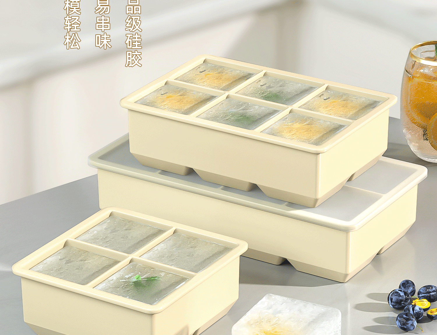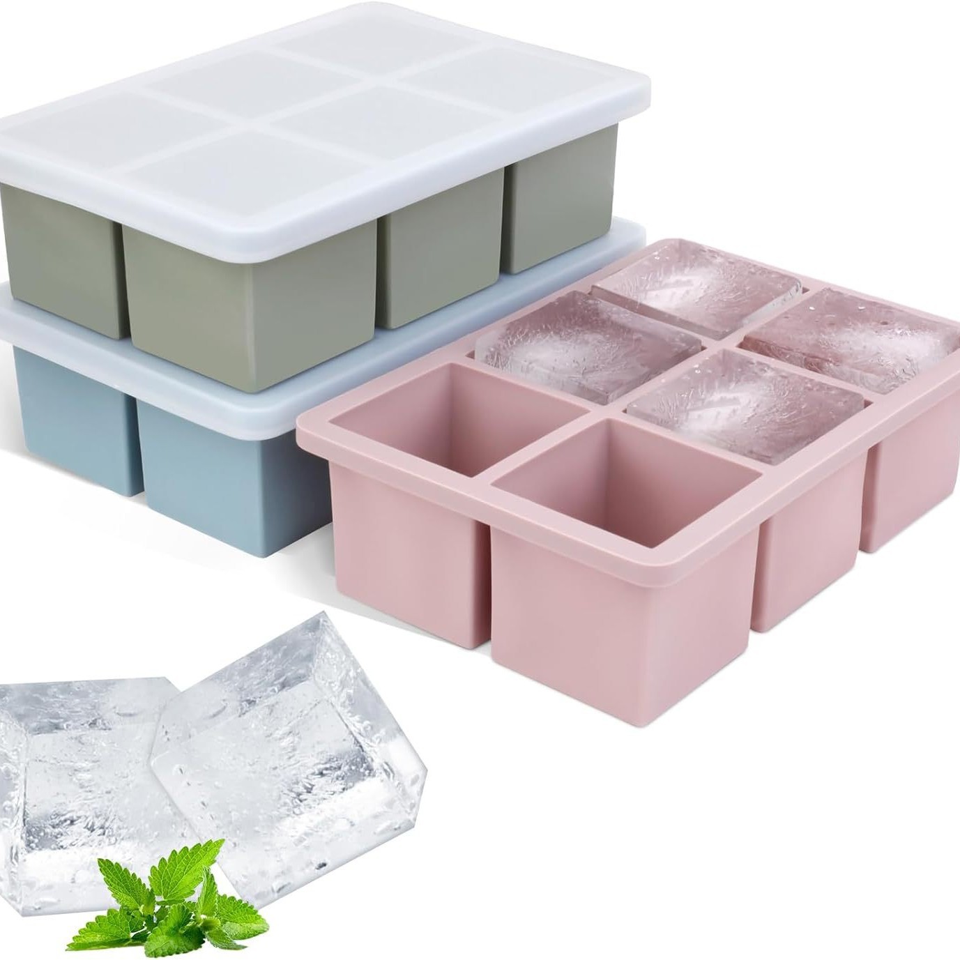 Color: 2025 new independent compartments [4 compartments for large ice cubes] morandi powder