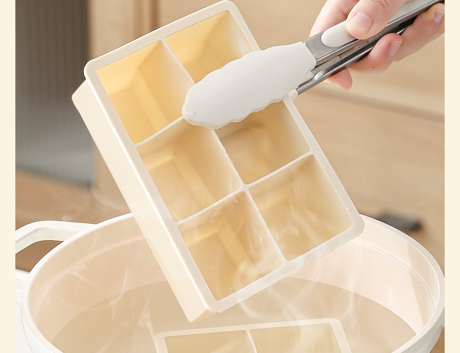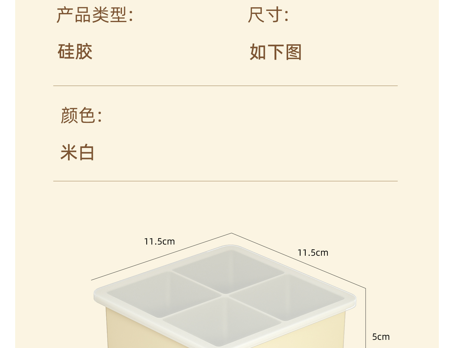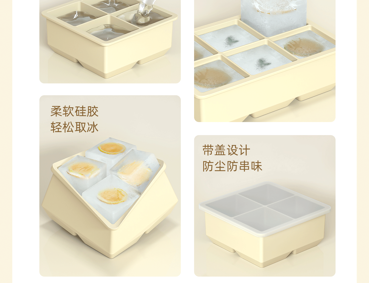 Color: Off-white [4-compartment large ice cubes with lid] thickened maternal and infant silicone