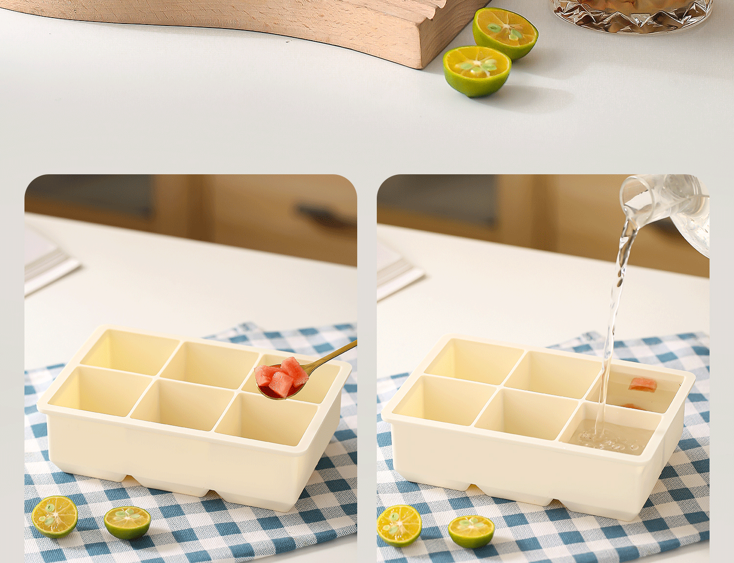 Color: Off-white [6 large ice cubes] with lid and thickened maternal and infant silicone