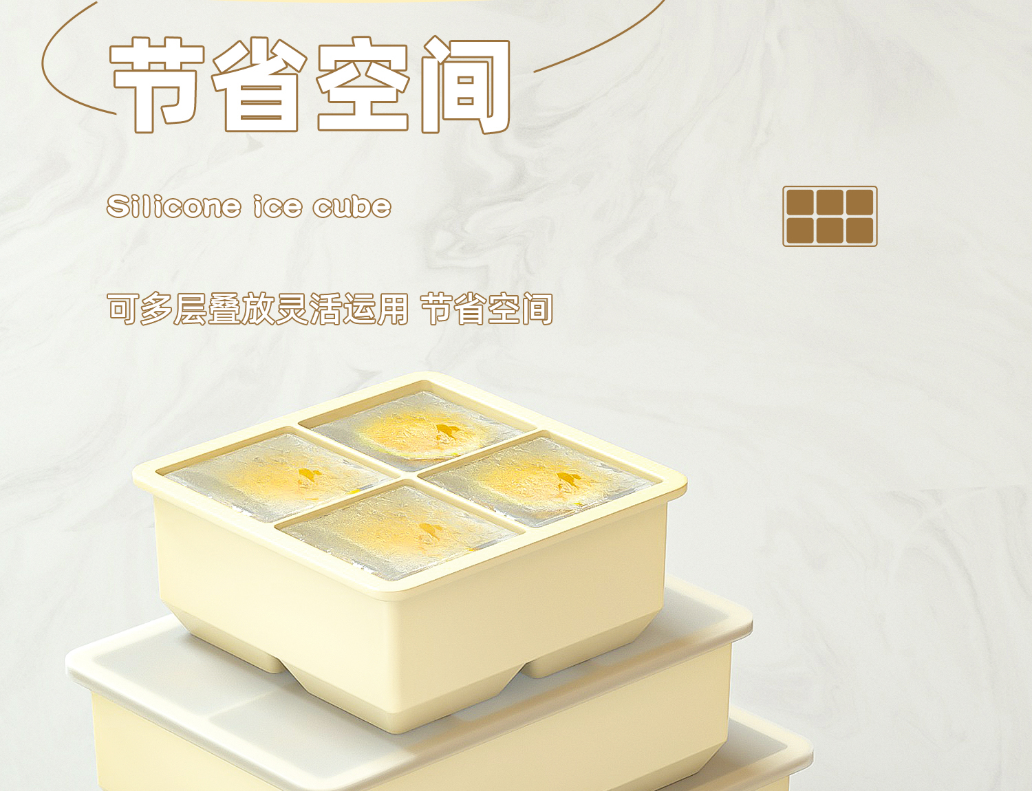 Color: 2025 new independent grids [4 grids large ice cubes] morandi black