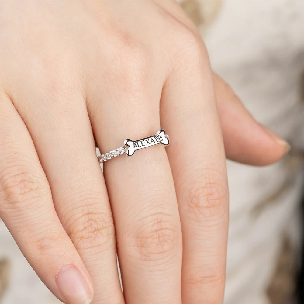 Europe and the United States cross-border fashion pet dog bone name personalized simple ring lettering name commemorative language personalized