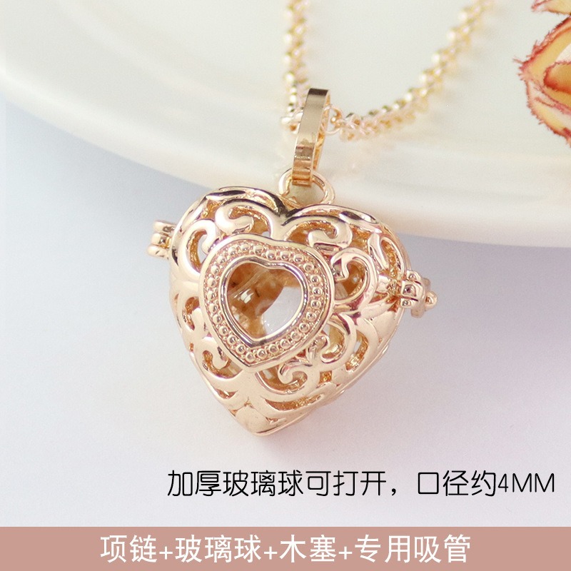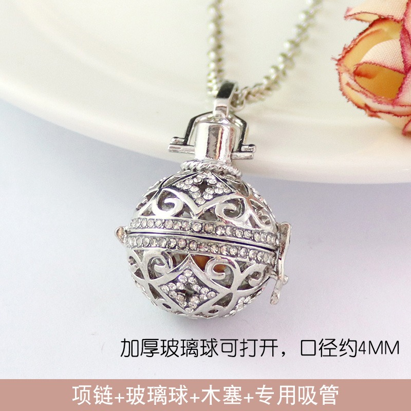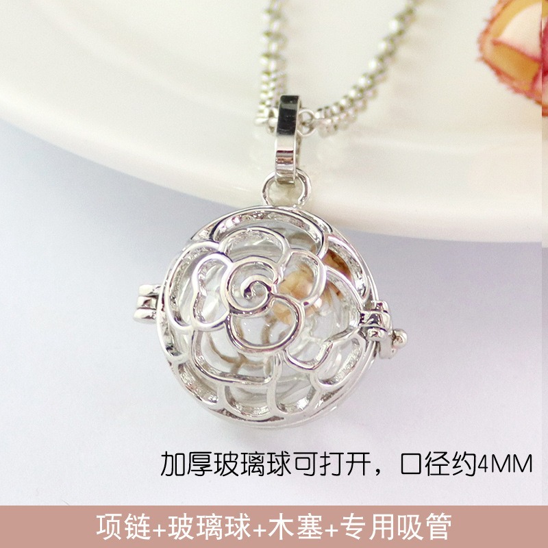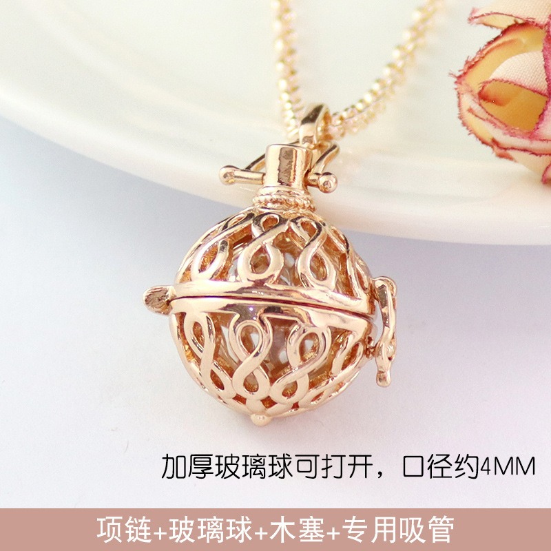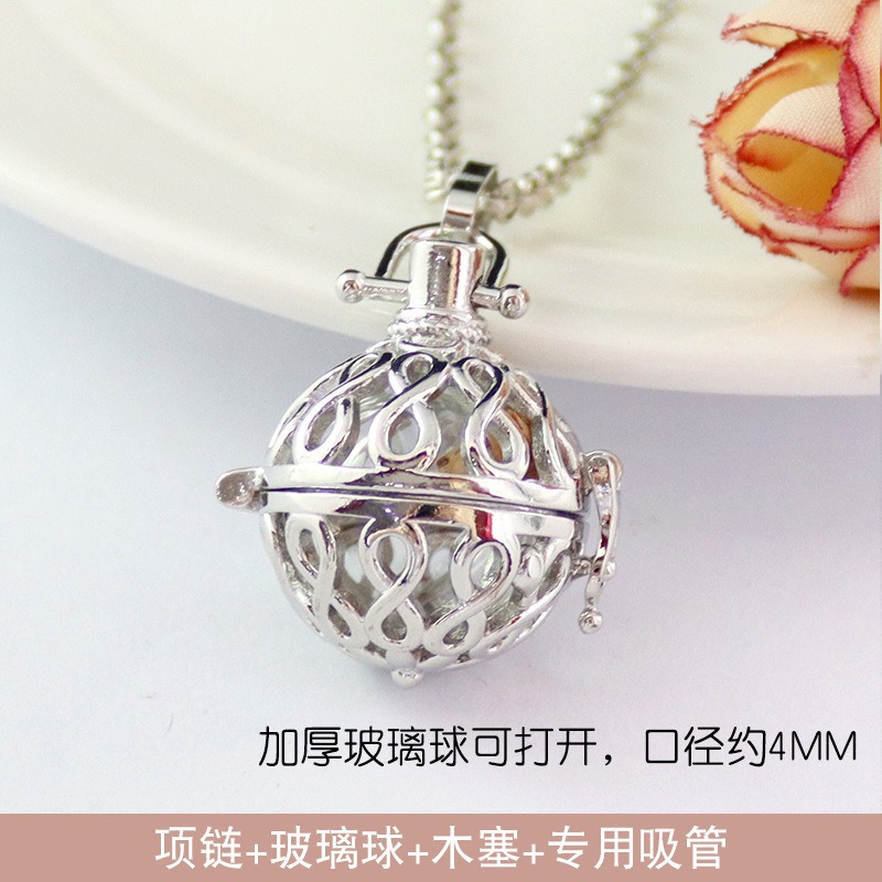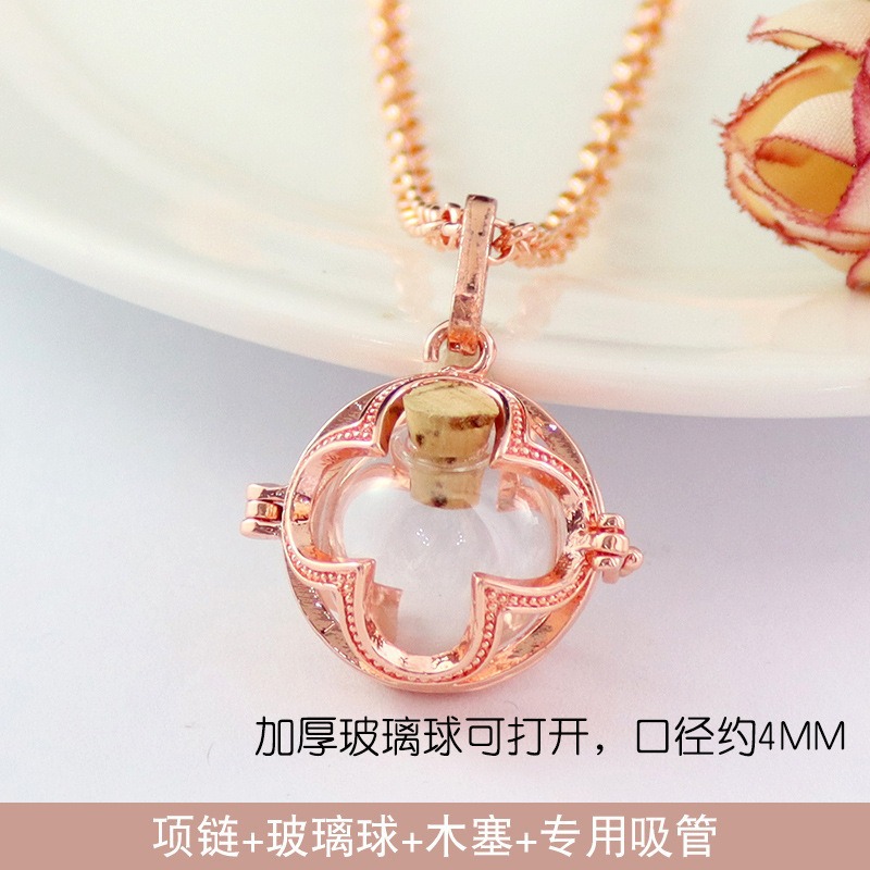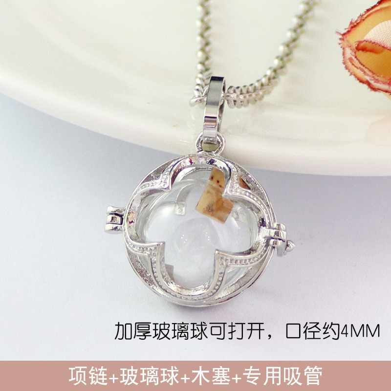 Features: Cut out four-leaf clover essential oil photo box glass ball sachet ball pendant openable glass bottle cinnabar hollow bottle necklace