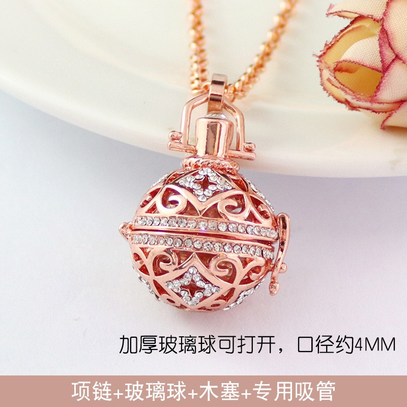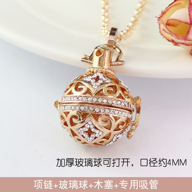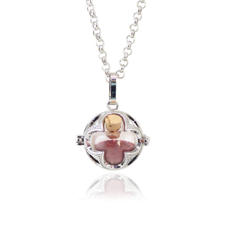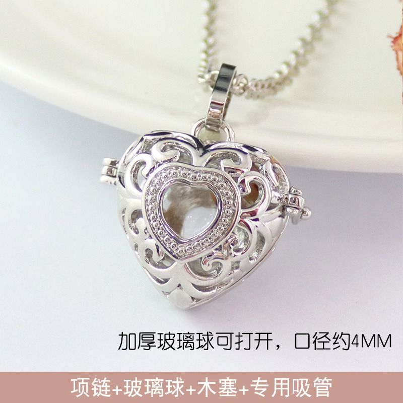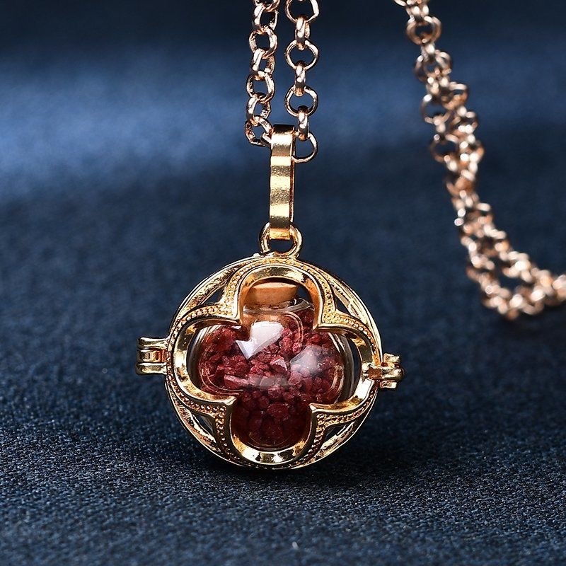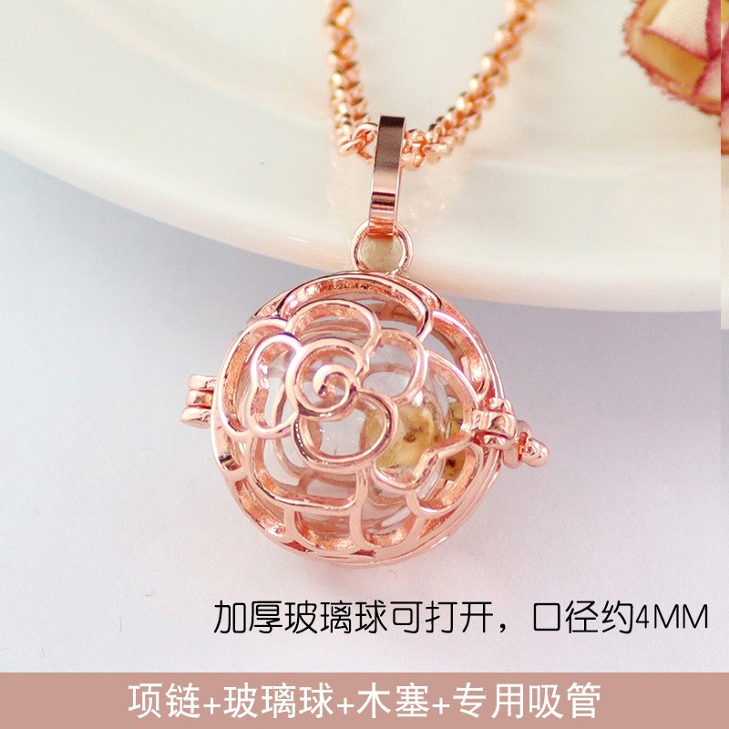 Features: Cut out four-leaf clover essential oil photo box glass ball sachet ball pendant openable glass bottle cinnabar hollow bottle necklace