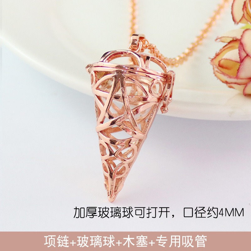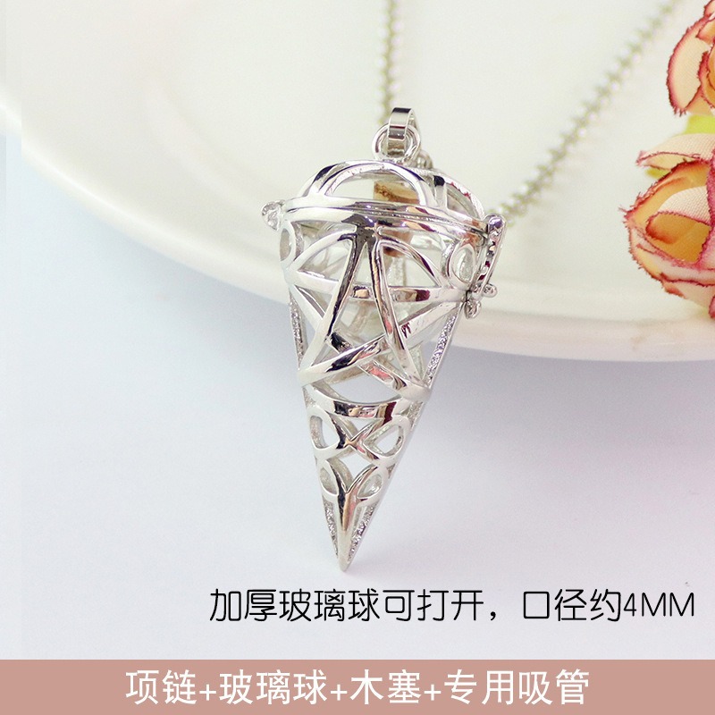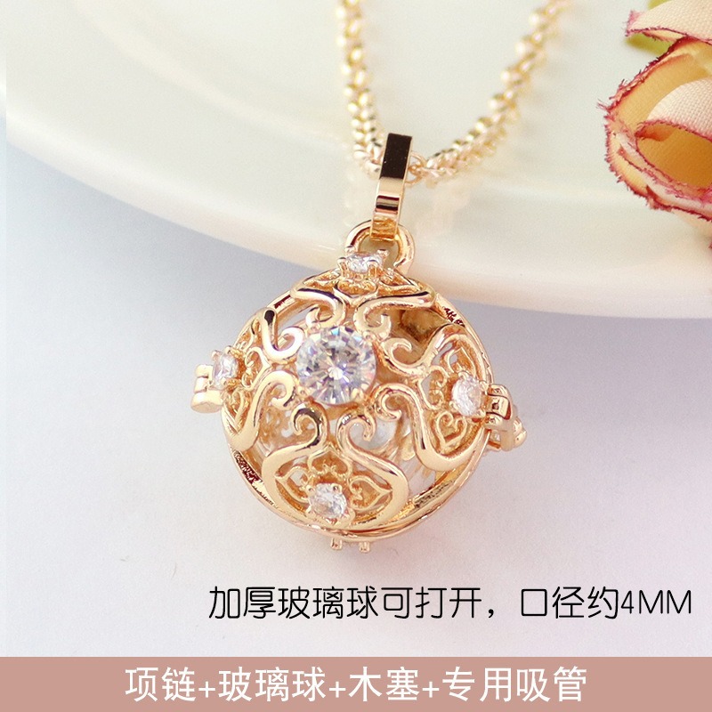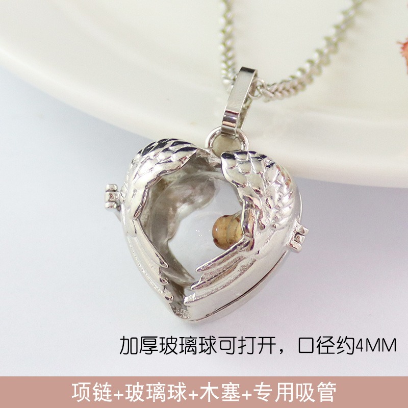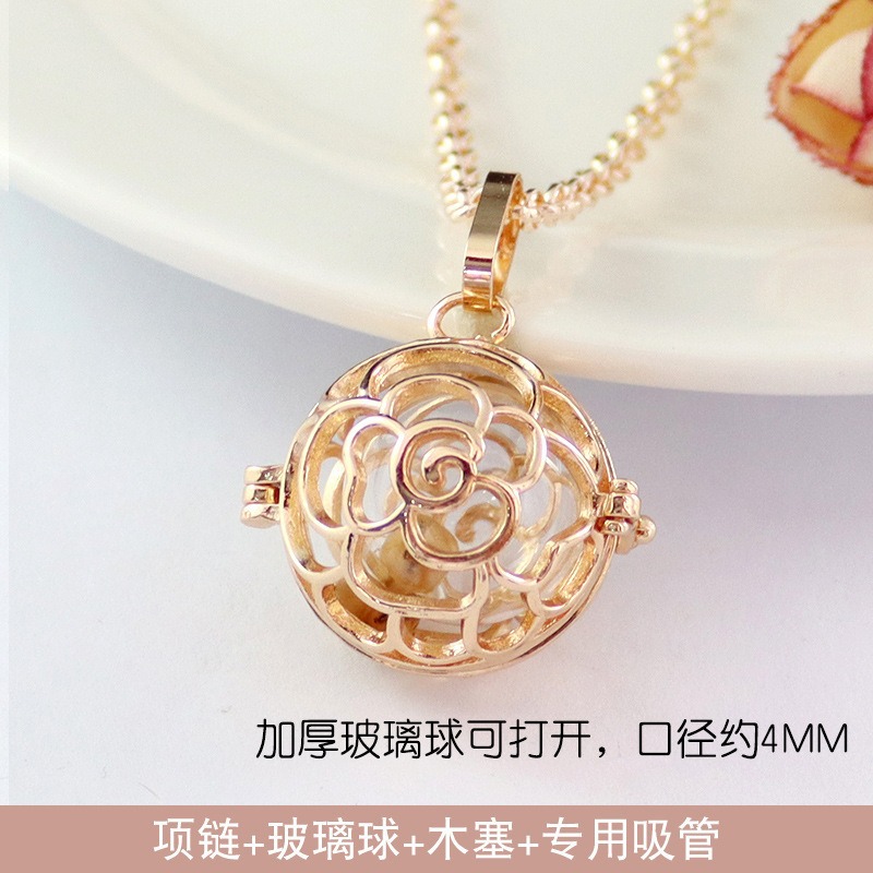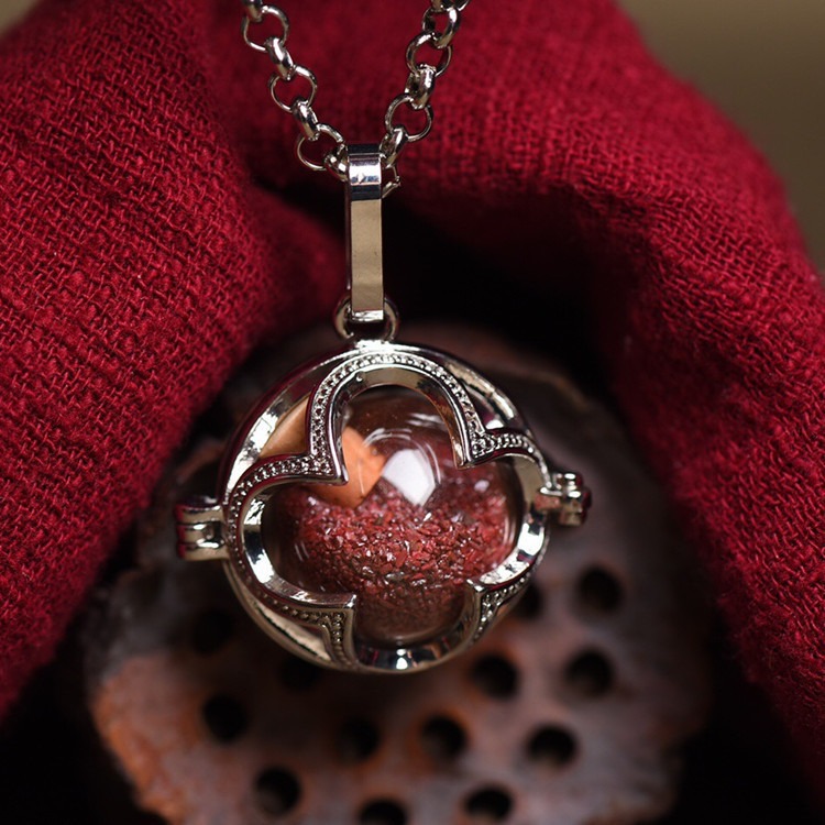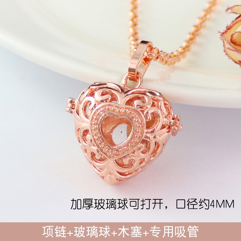 Features: Cut out four-leaf clover essential oil photo box glass ball sachet ball pendant openable glass bottle cinnabar hollow bottle necklace