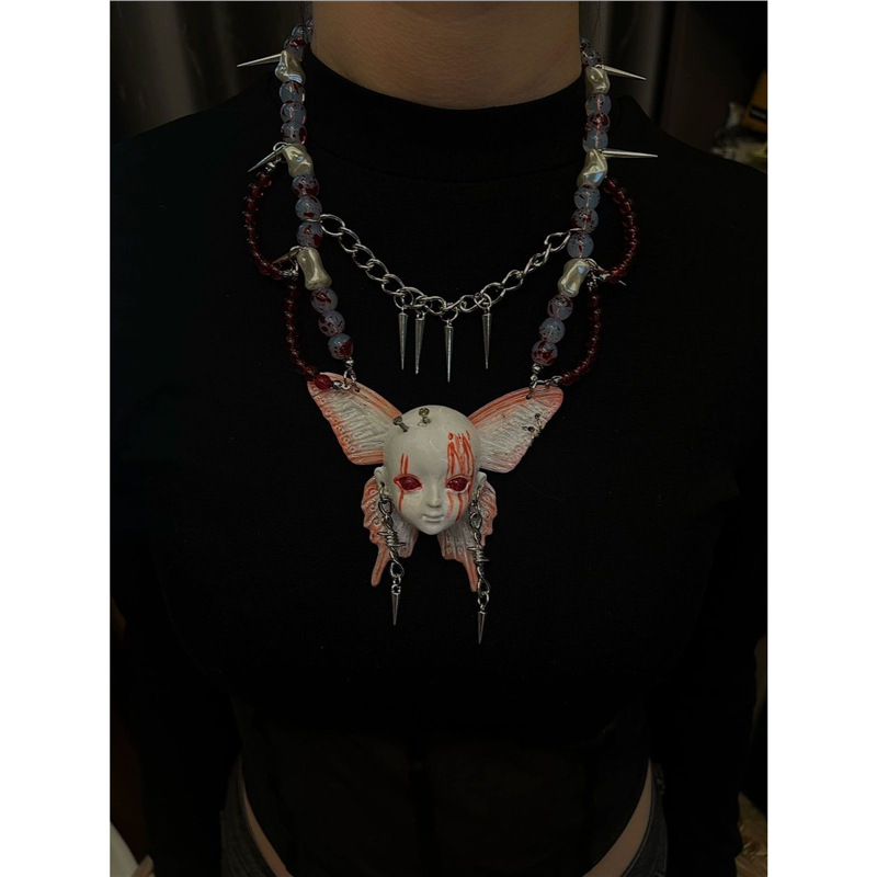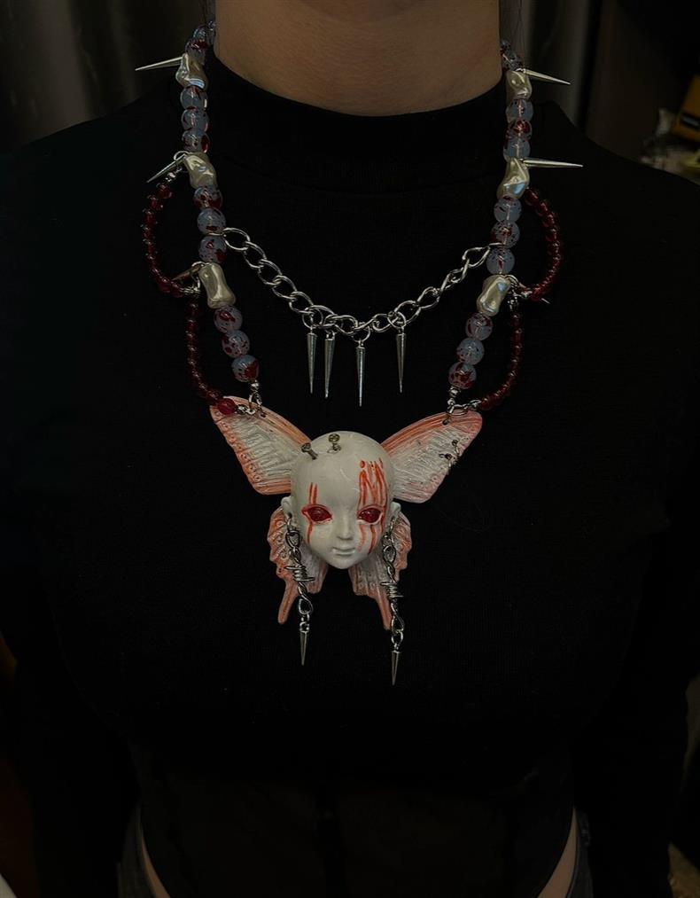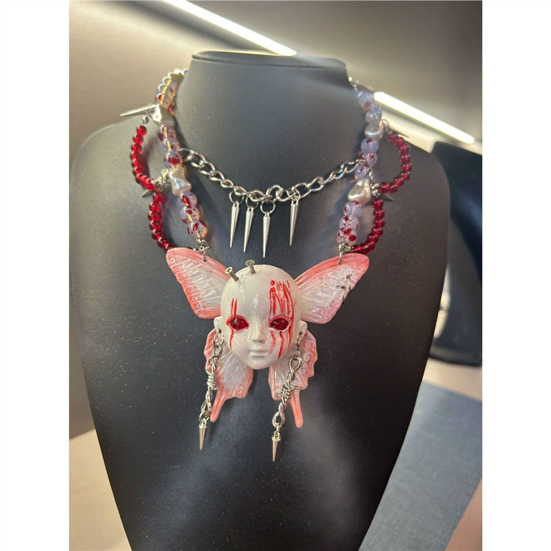 [Mao Niu Niu] Blood Butterfly Beaded Subculture Gothic Necklace