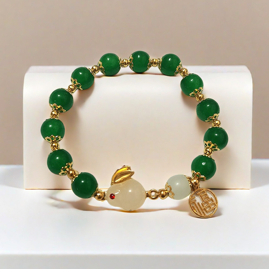 Color: E13 emerald green beads nafu jade rabbit bracelet