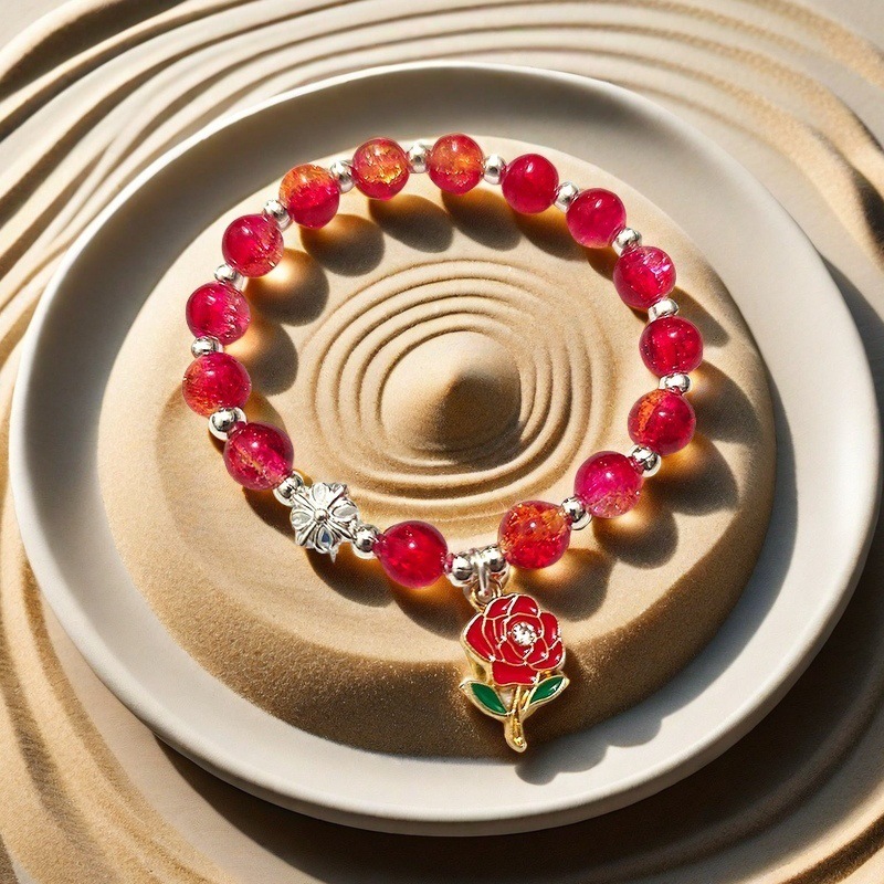 Color: Bd02 crow heart diamond red rose bracelet