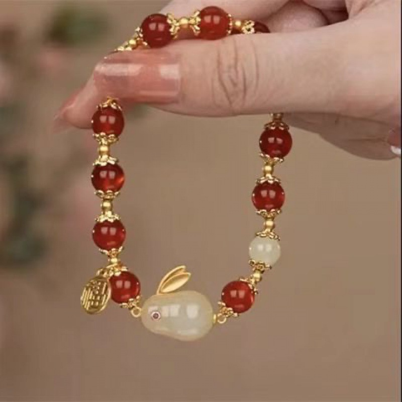 Color: E10 red bead lucky jade rabbit bracelet