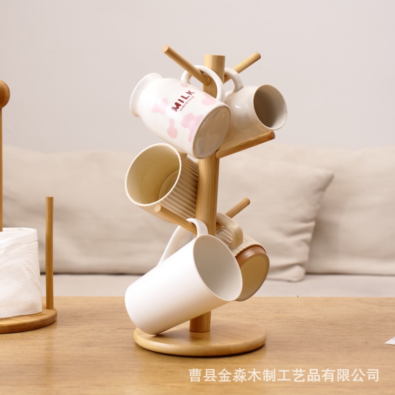 Wooden Kitchen Cup Holder, Paper Towel Storage Rack, Tree-Shaped Stand, Bracelet and Necklace Organizer, Home Drainage Rack, Solid Wood Shelf