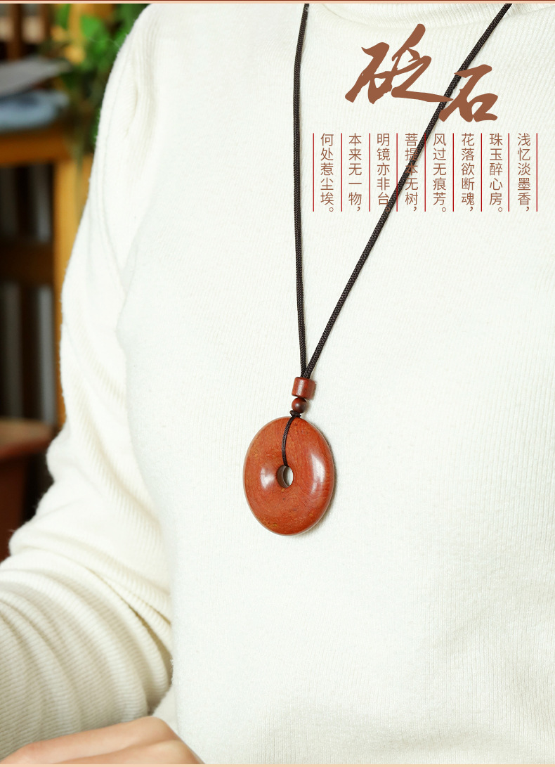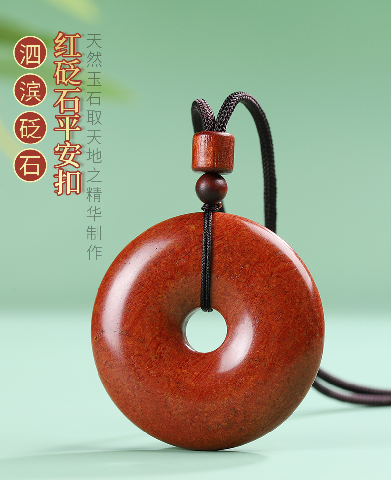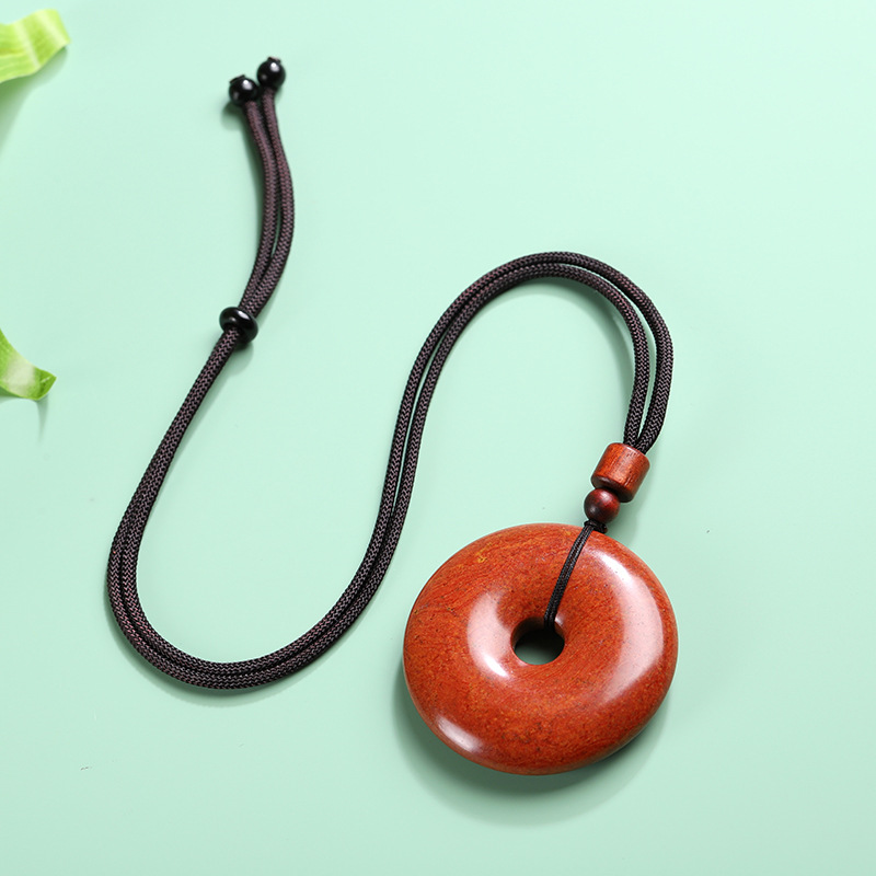 Surabaya Stone Bian Ping An Buckle Necklace Universal Surabaya Stone Bian Pendant Dredge Meridians Woolen Chain Necklace