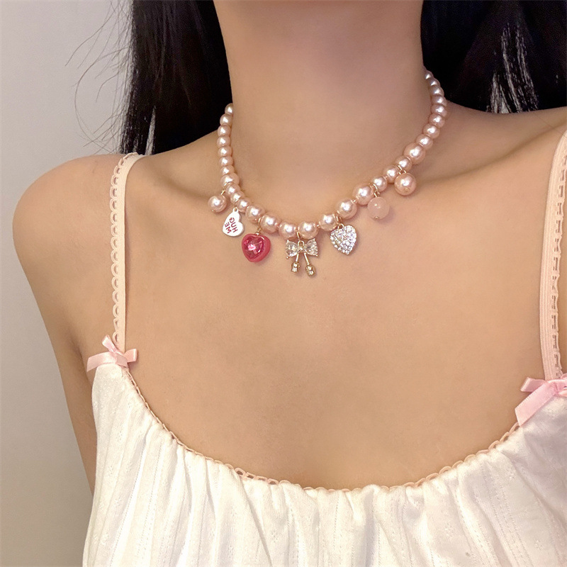 Love Bow Pearl Necklace Women's 2025 New Sweet Necklace Clavicle Chain Light Luxury Accessories