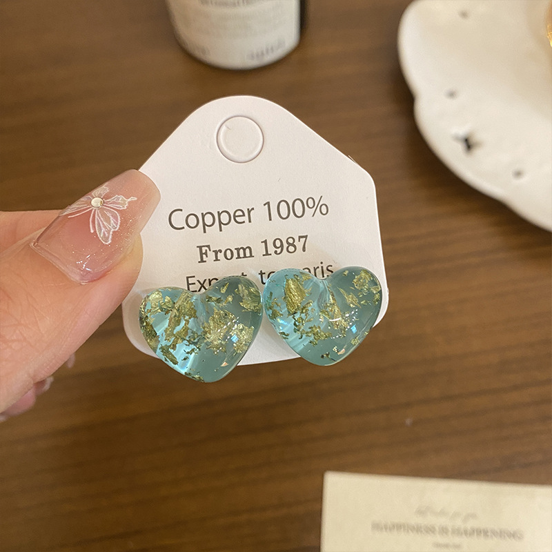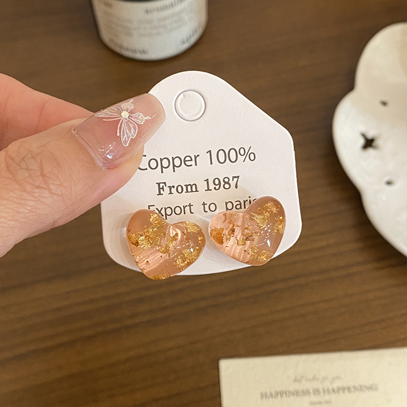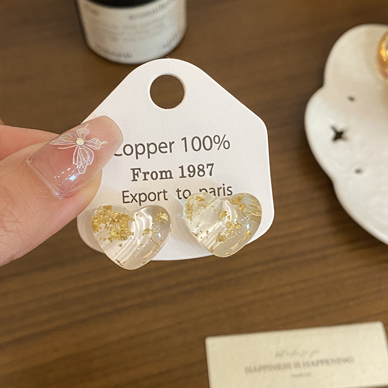 Color: Transparent love gold foil earrings (aa3765)