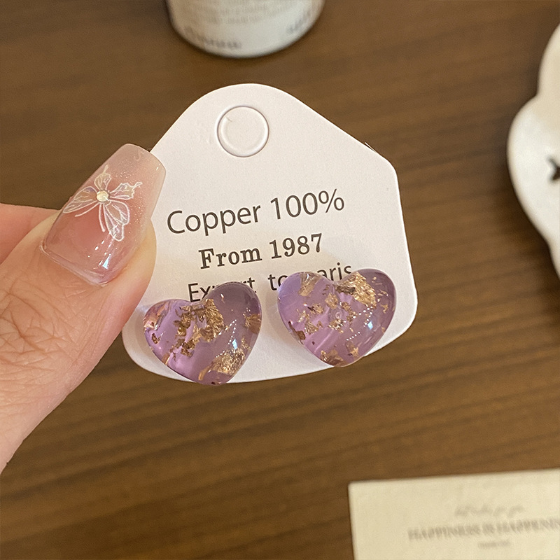 Color: Purple love gold foil earrings (aa3558)