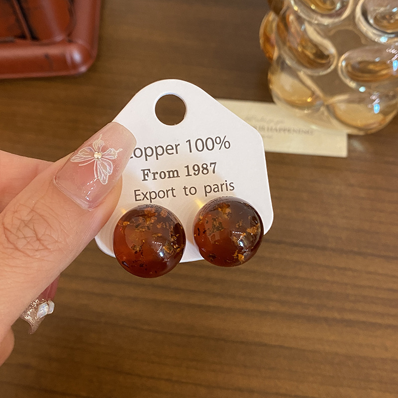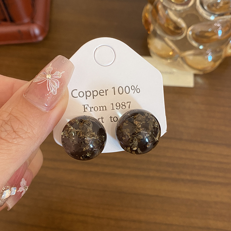 Color: Brown ball gold foil stud earrings (aa2736)