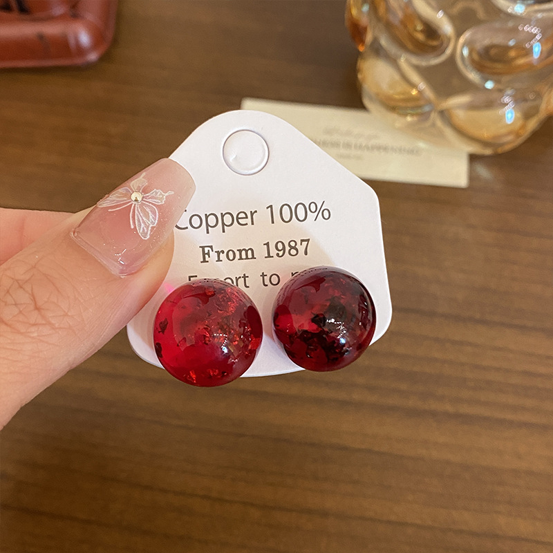Color: Red ball gold foil earrings (aa2733)