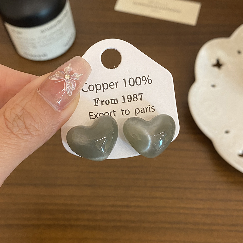 Color: Gray love tiger eye stone earrings (aa3254)