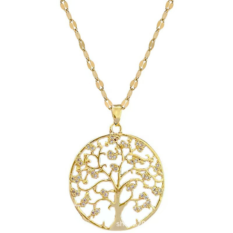 [Titanium Steel] Micro-inlaid temperament light luxury full diamond real gold exquisite micro-inlaid necklace women's fashion trend clavicle chain manufacturers