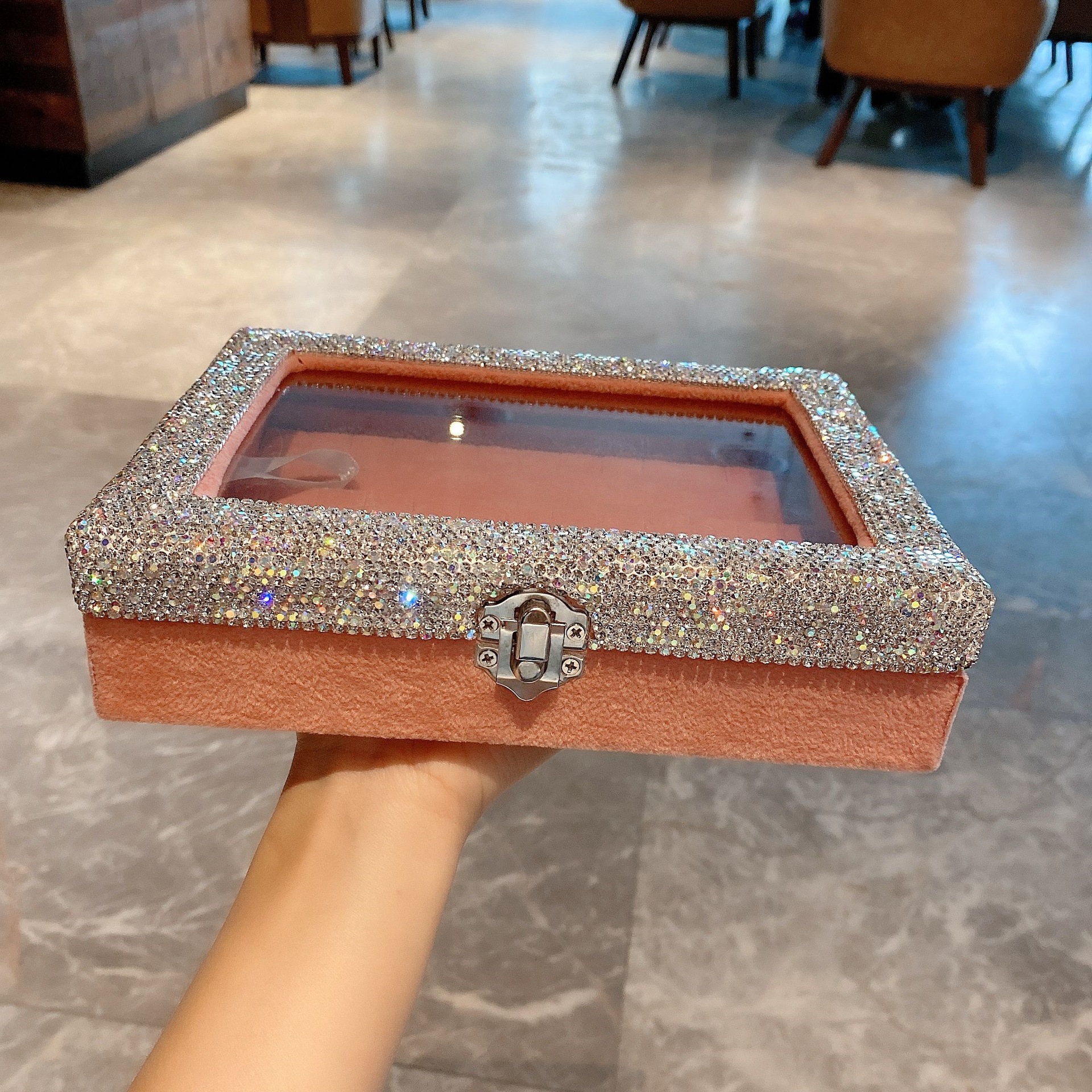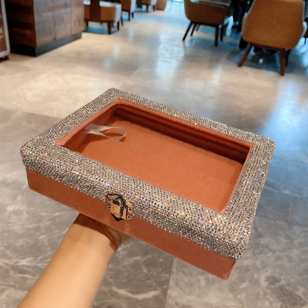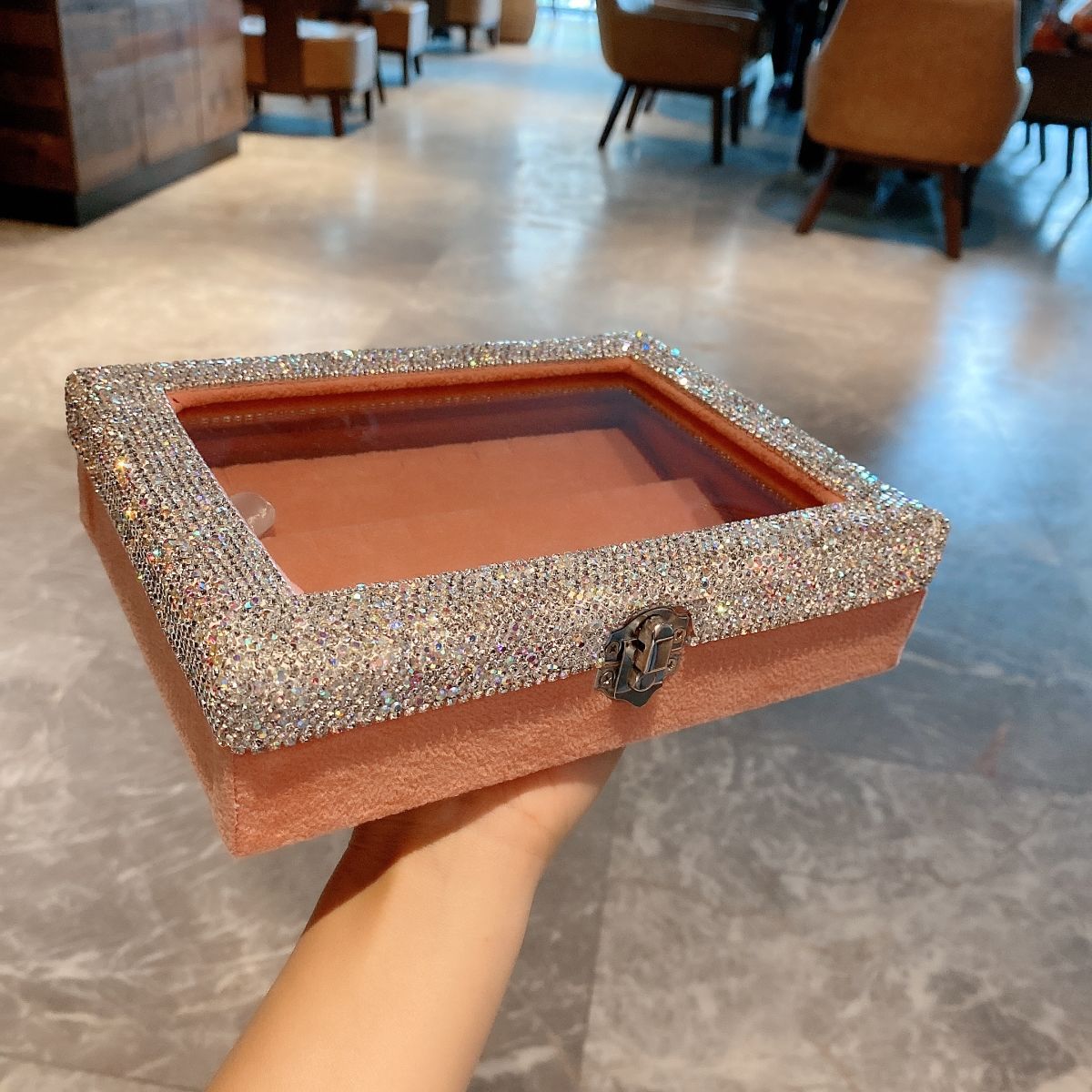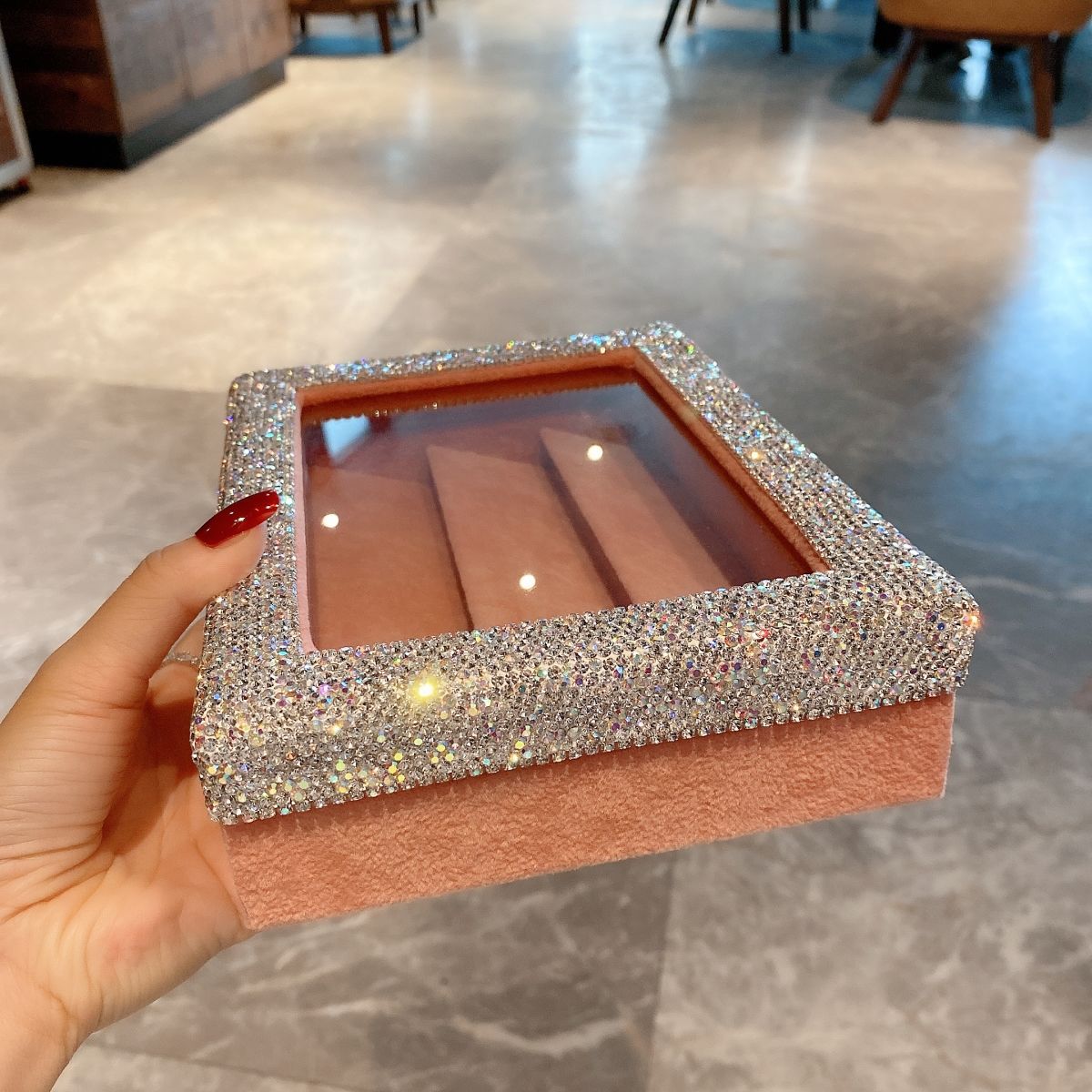 Xz9666 diamond-encrusted pink velvet jewelry box white diamond