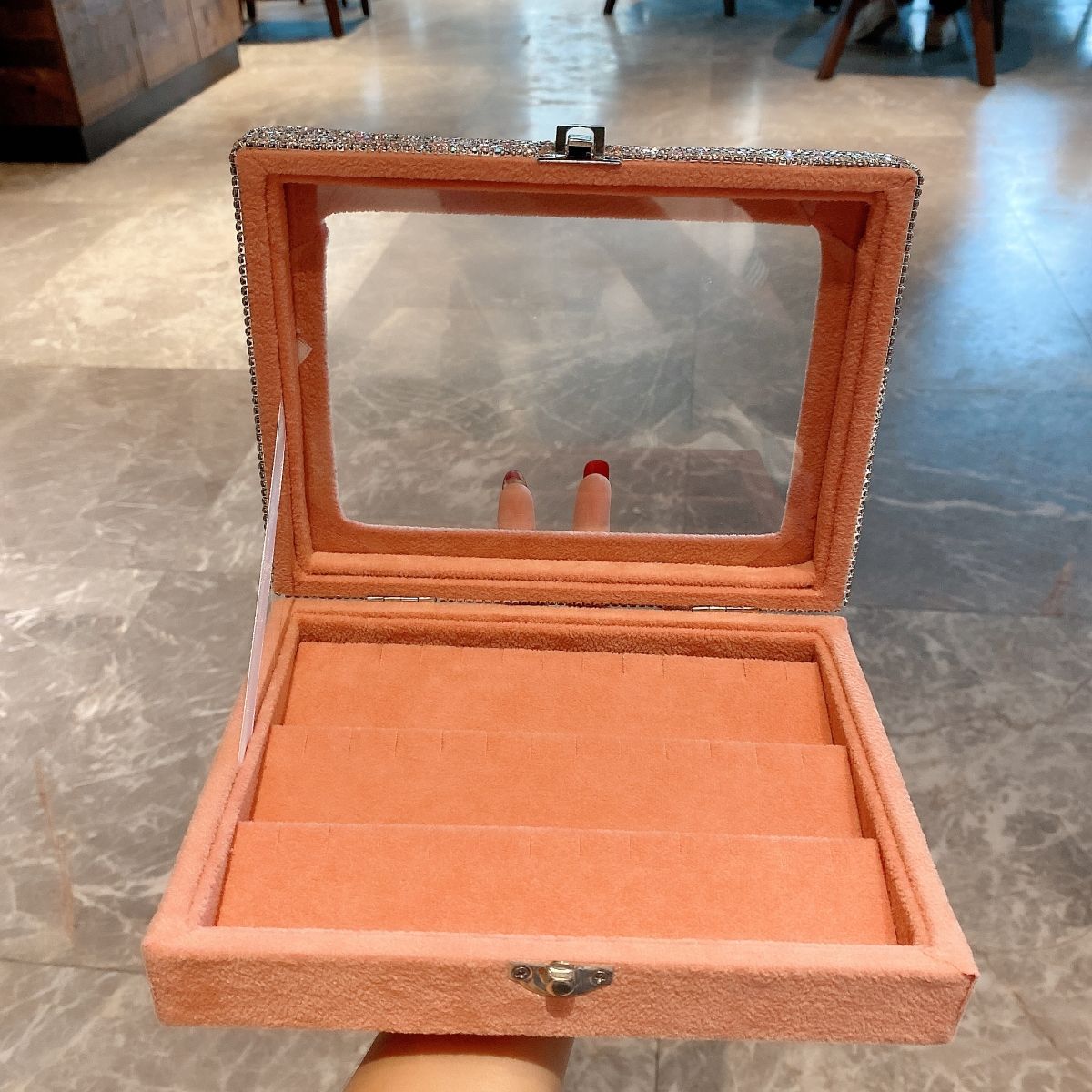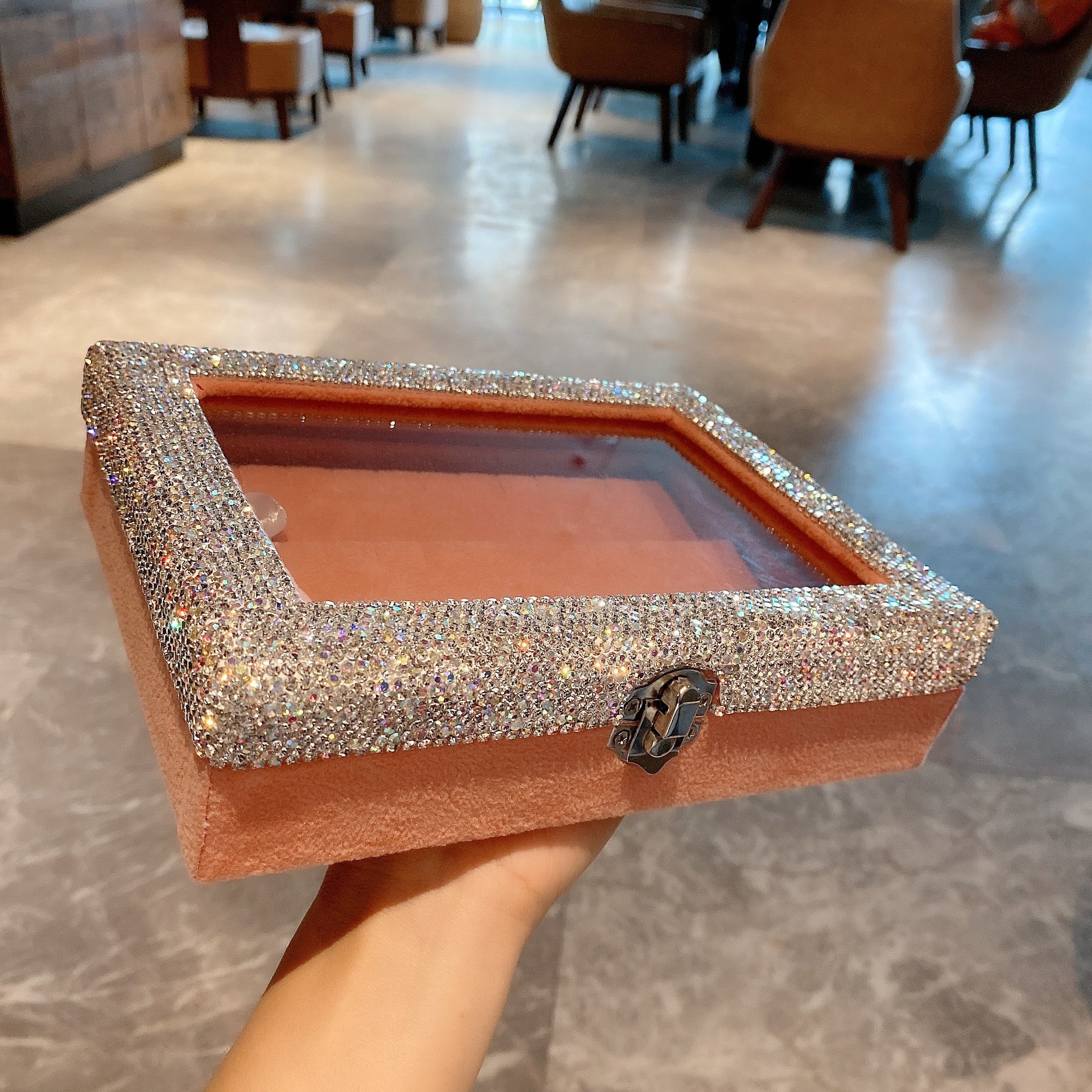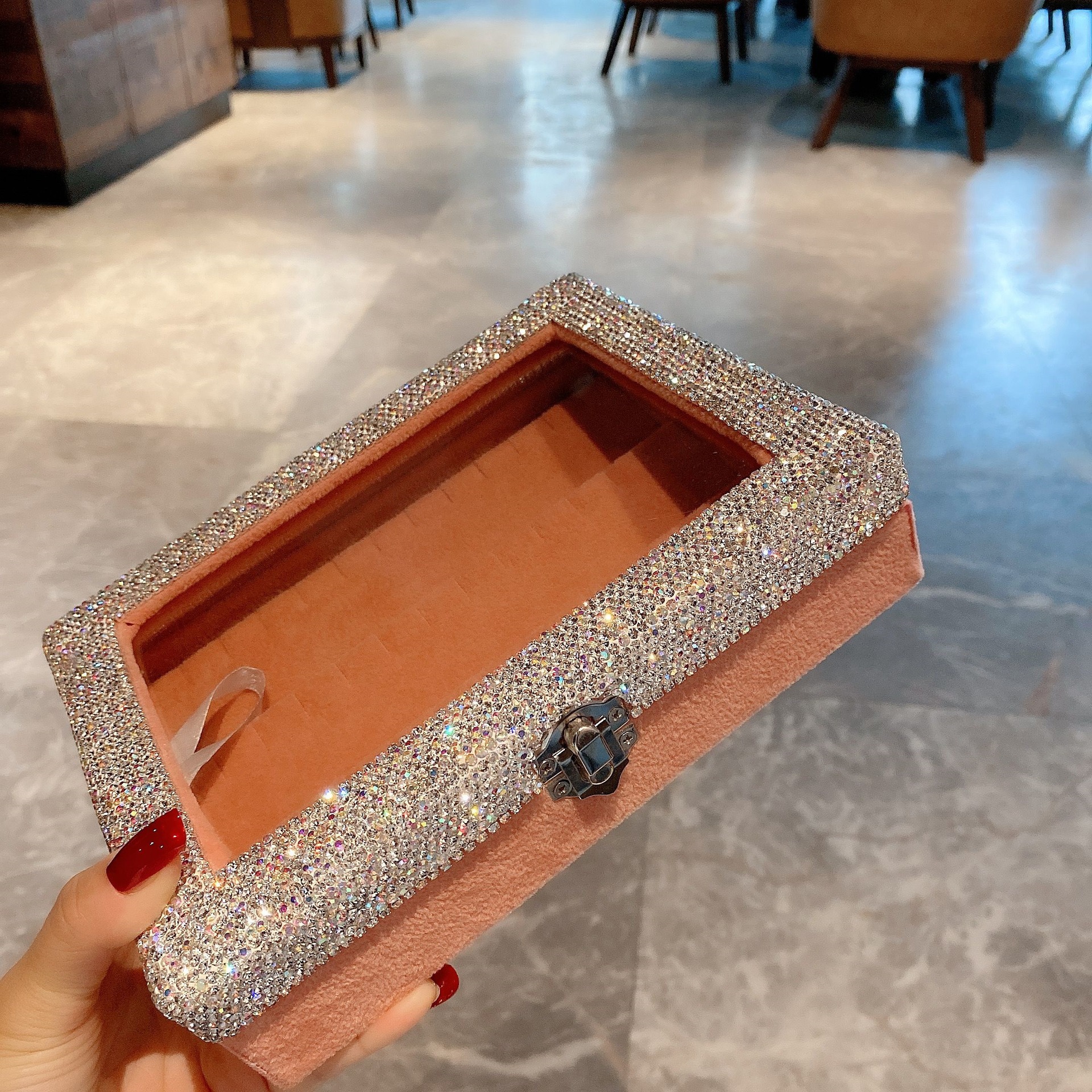Xz9666 diamond-encrusted pink velvet jewelry box white diamond