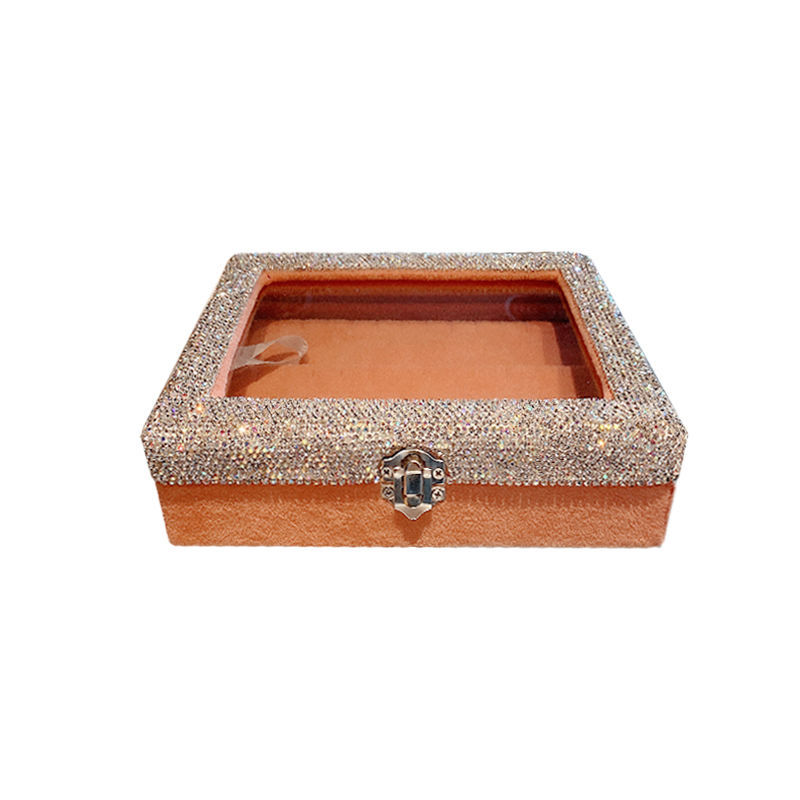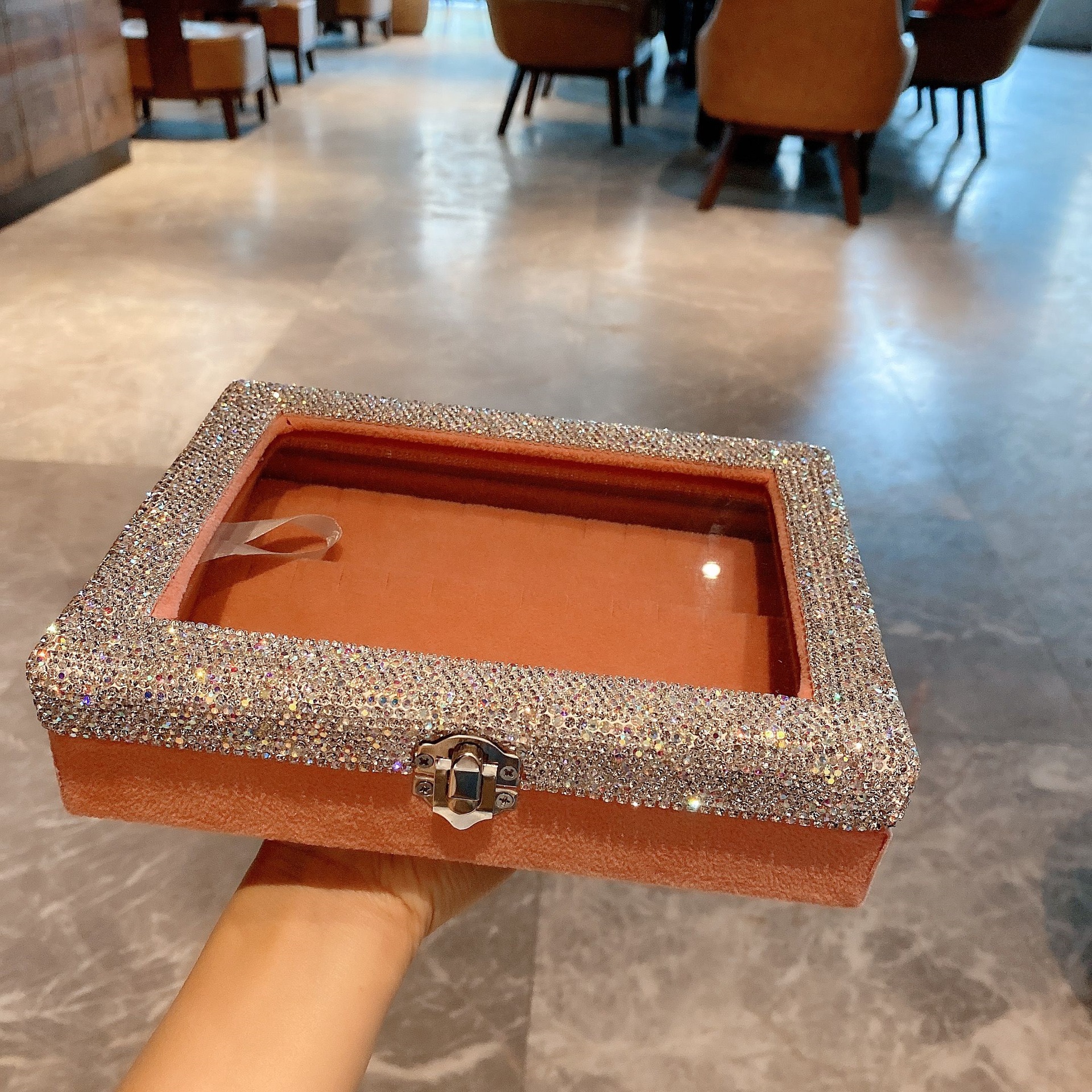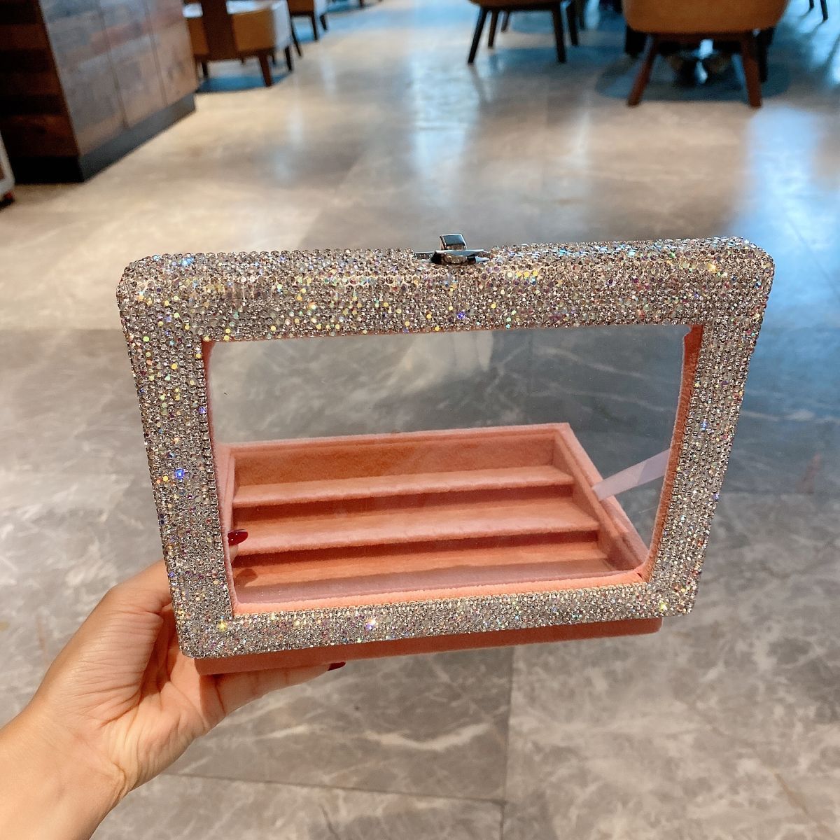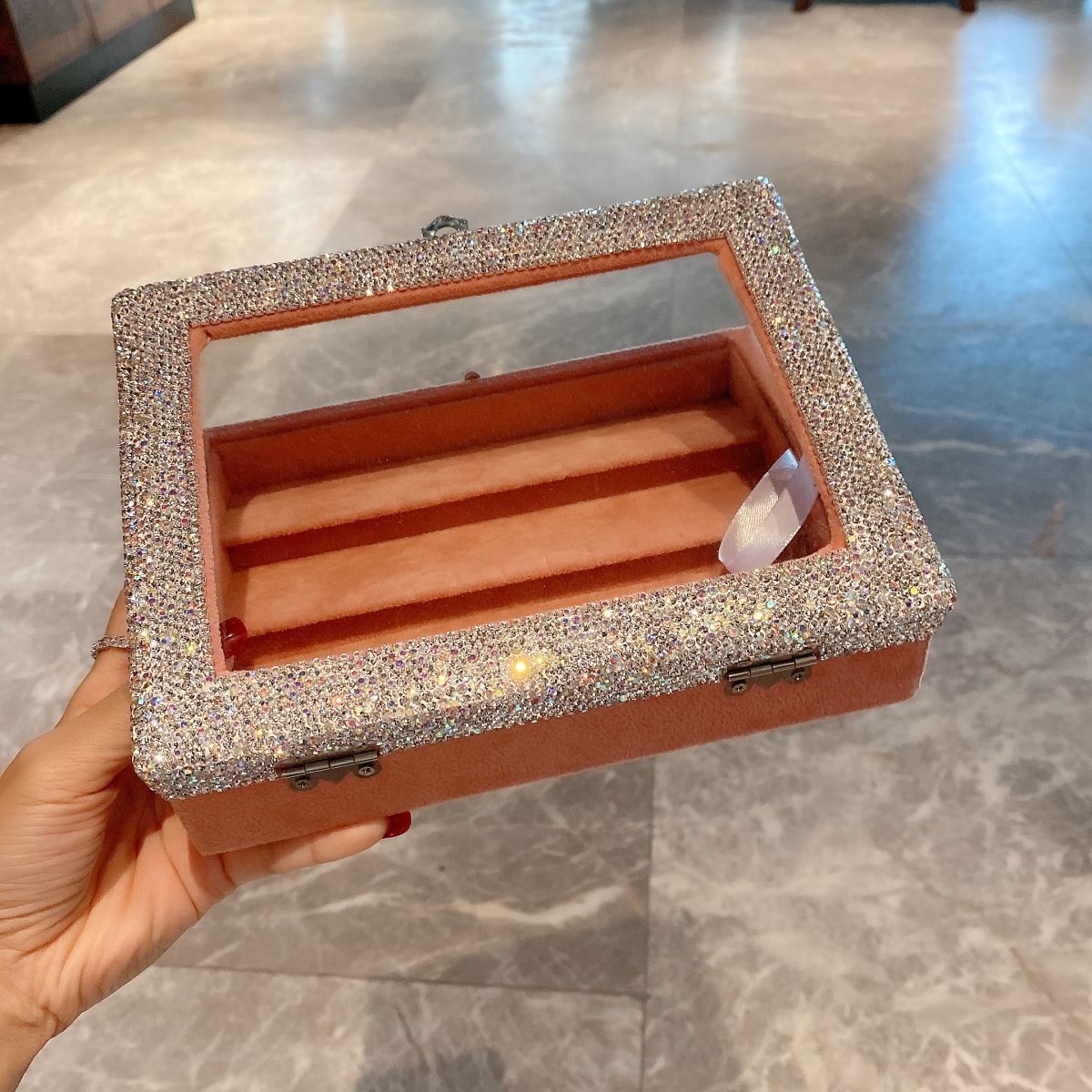 Xz9666 diamond-encrusted pink velvet jewelry box white diamond