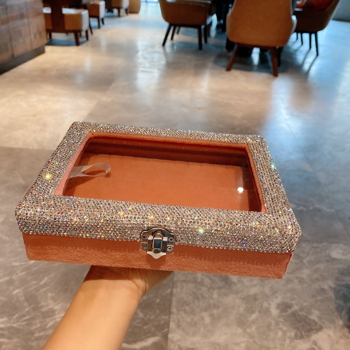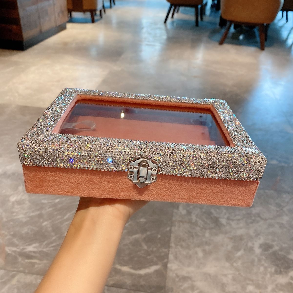 Color: Xz9666 diamond-encrusted pink velvet jewelry box white diamond