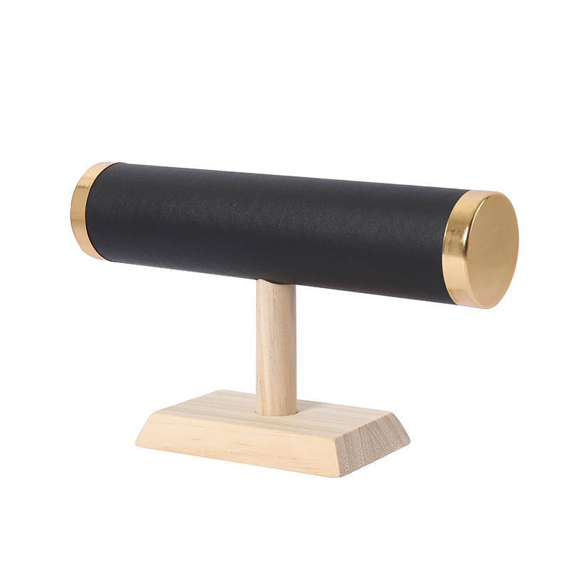 Color: (black leather) one-layer bracelet stand solid wood gold cover